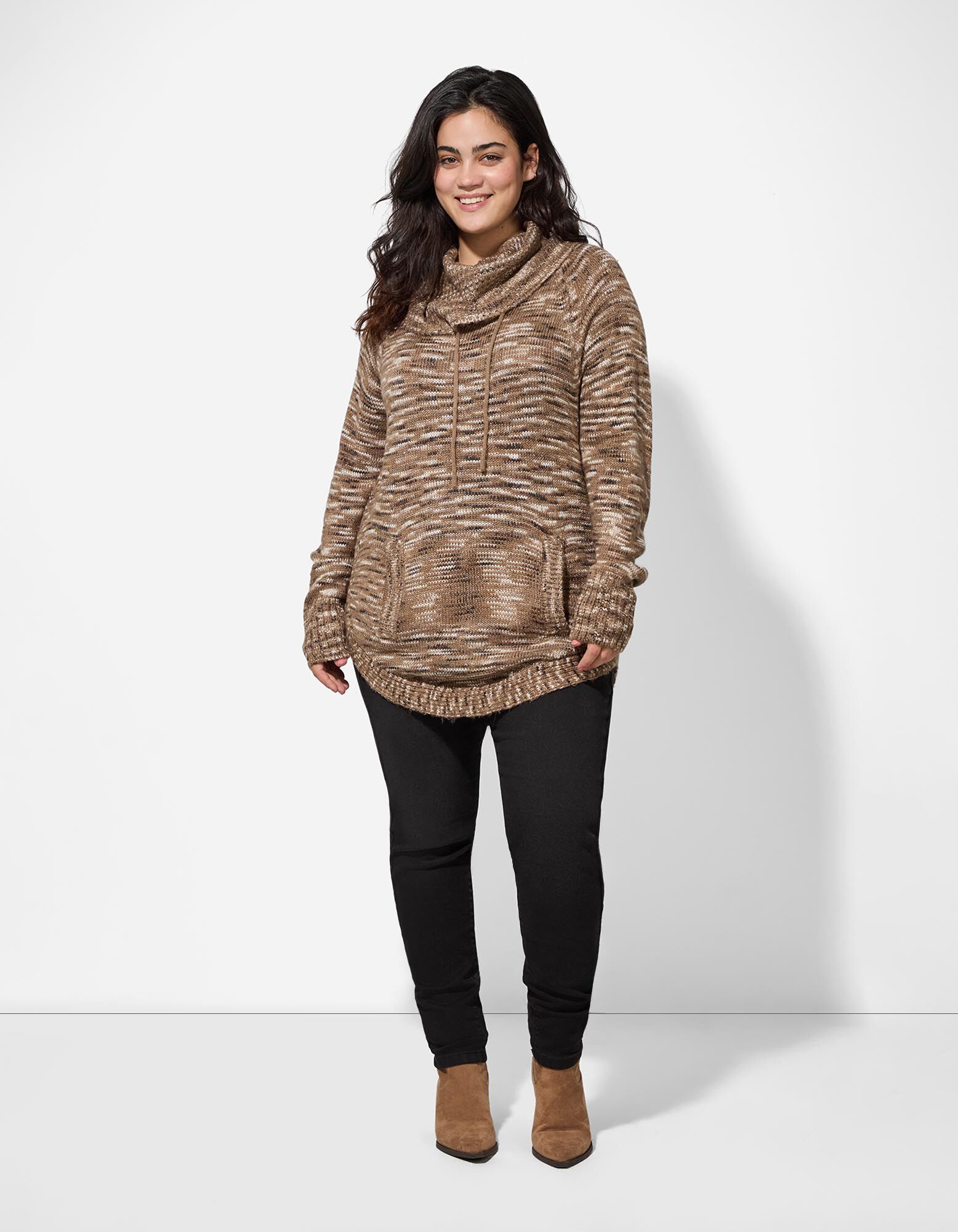 Dlouhý pulovr - Rolákový límec - béžová