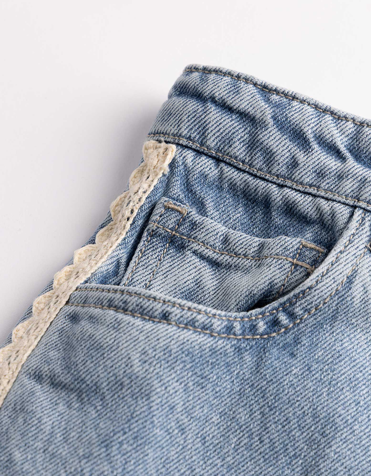 Džíny - Háčkovaná krajka - svetle modra
