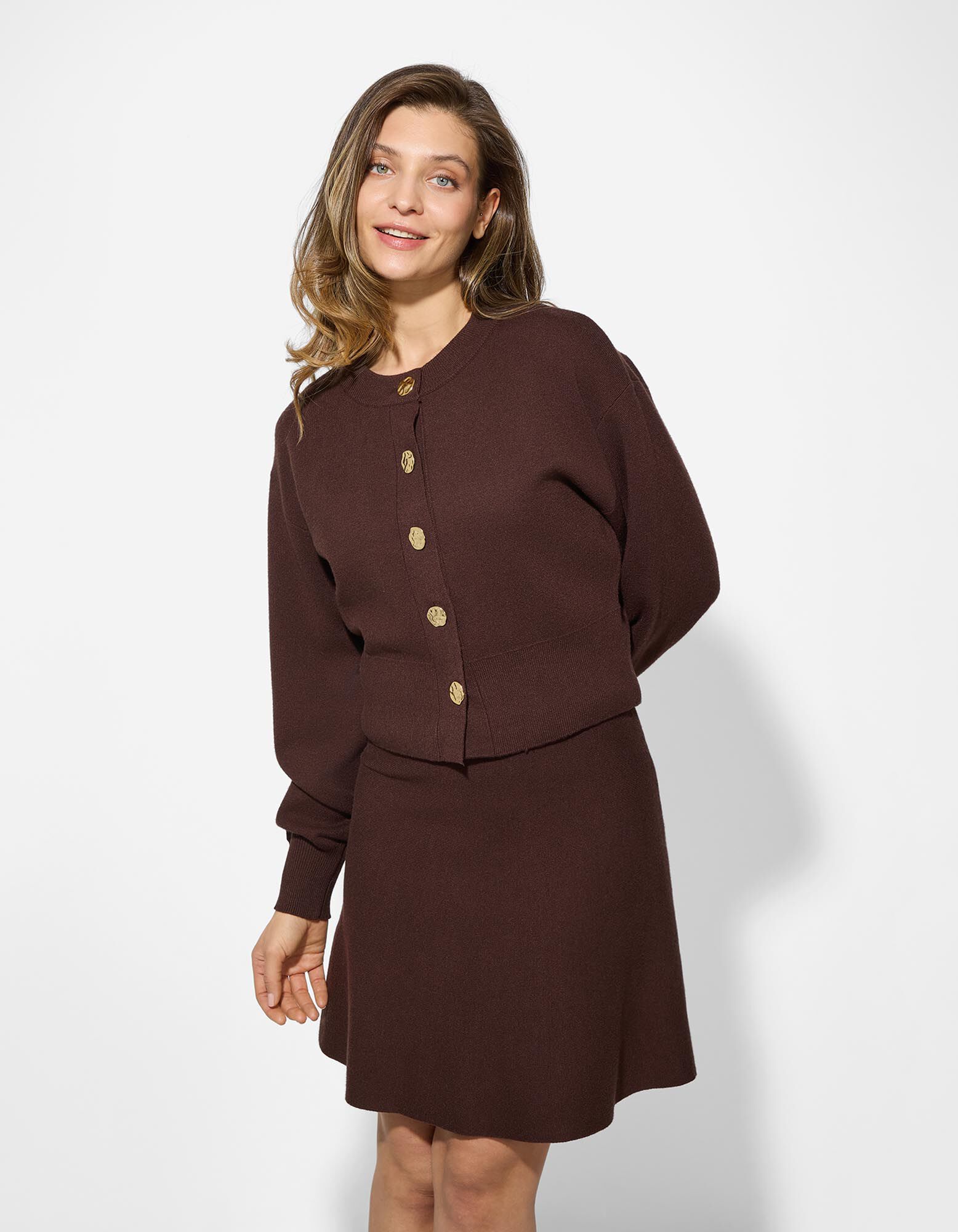 Kardigan - Knoflíky - tmave hneda
