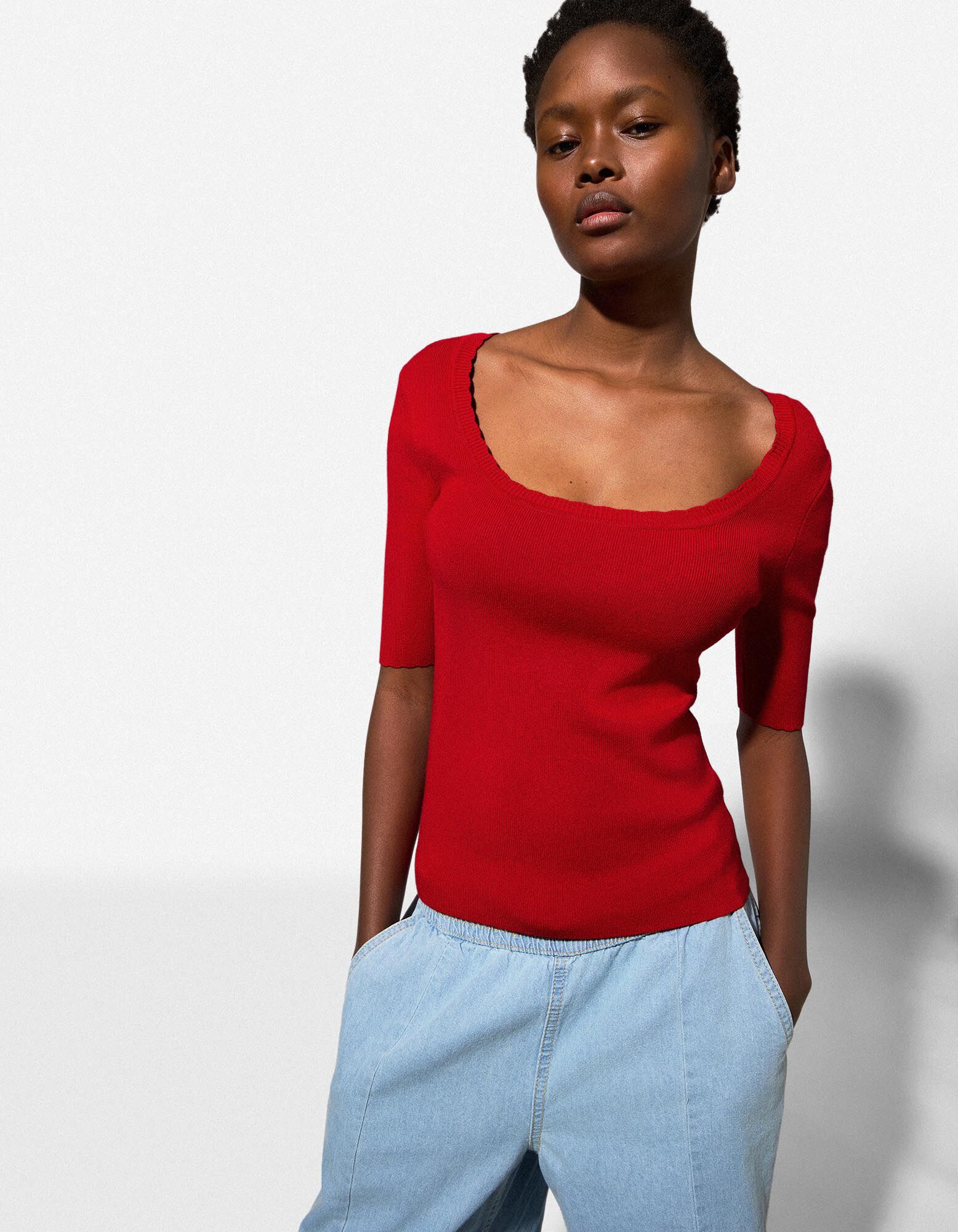 Pletená košile - Směs s viskózou - cervena