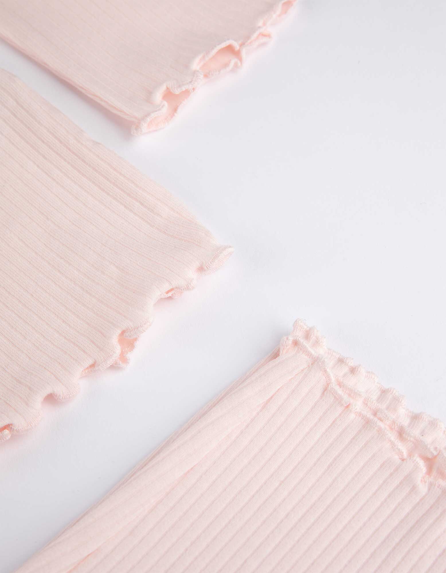 Pyžamový komplet sestávající z trička s dlouhým rukávem a kalhot  - Mušličkový lem - ruzova
