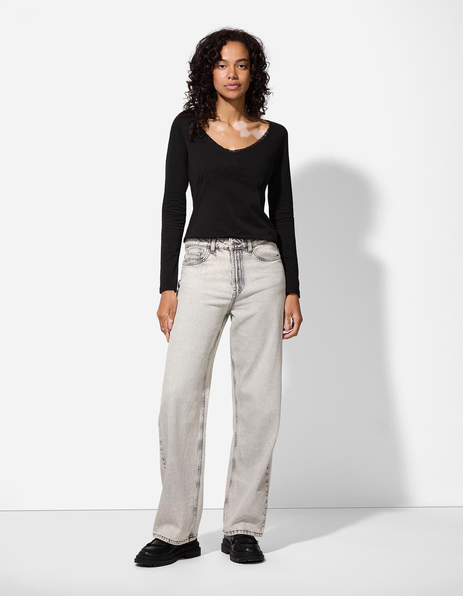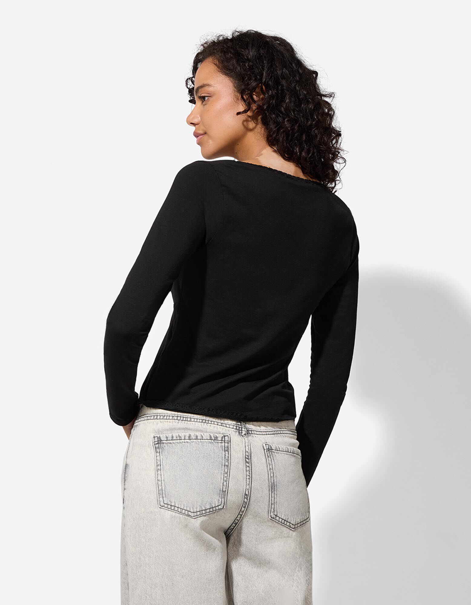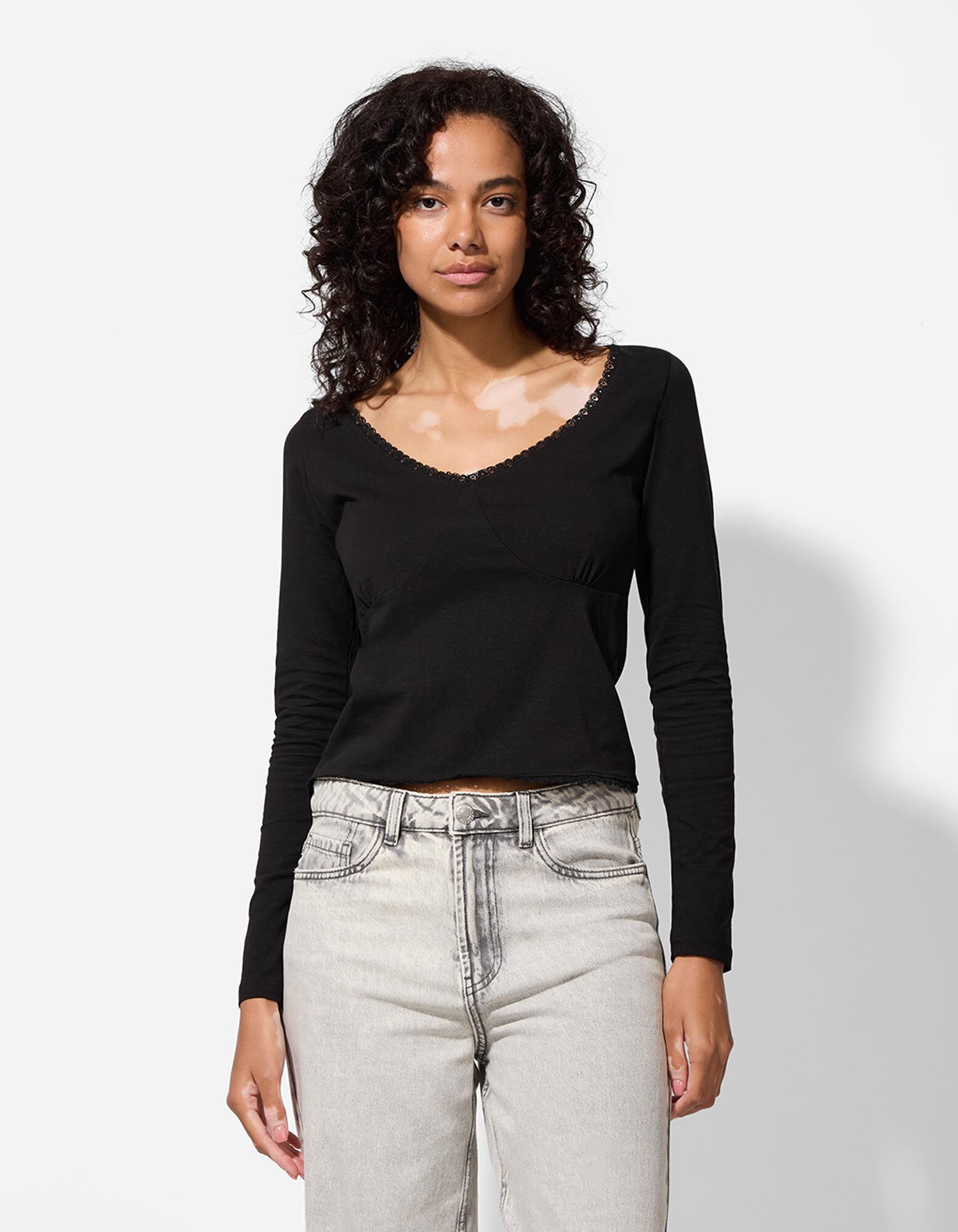 Tričko s dlouhým rukávem - Krajková aplikace - cerná