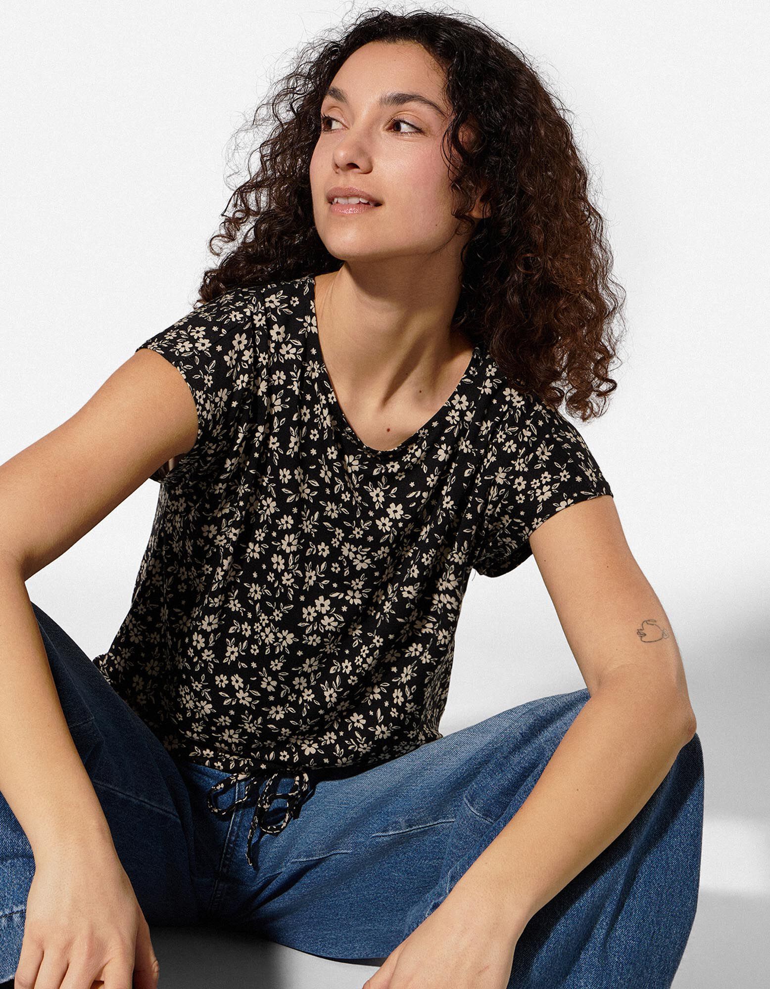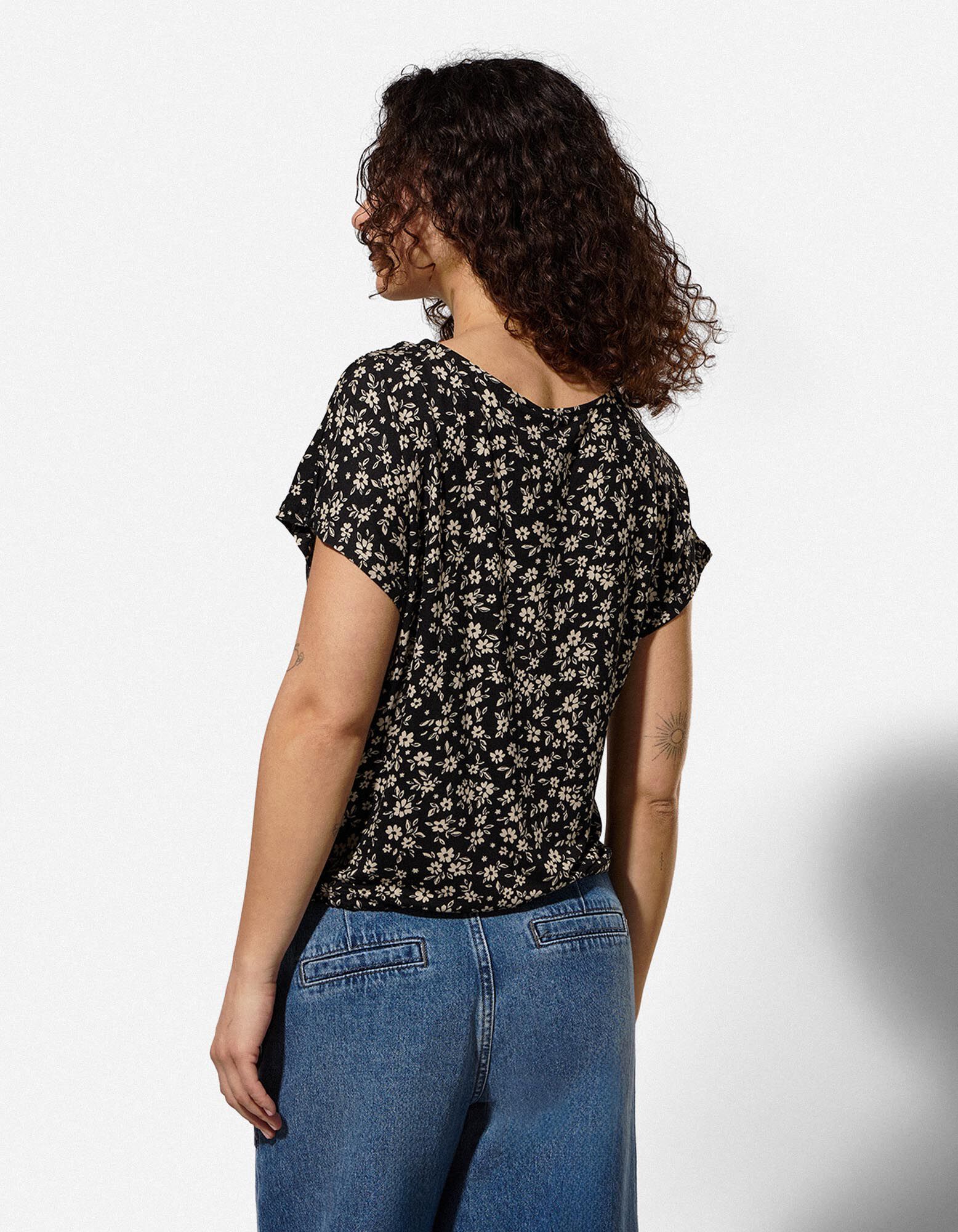 Tričko - Květovaný vzor - cerná