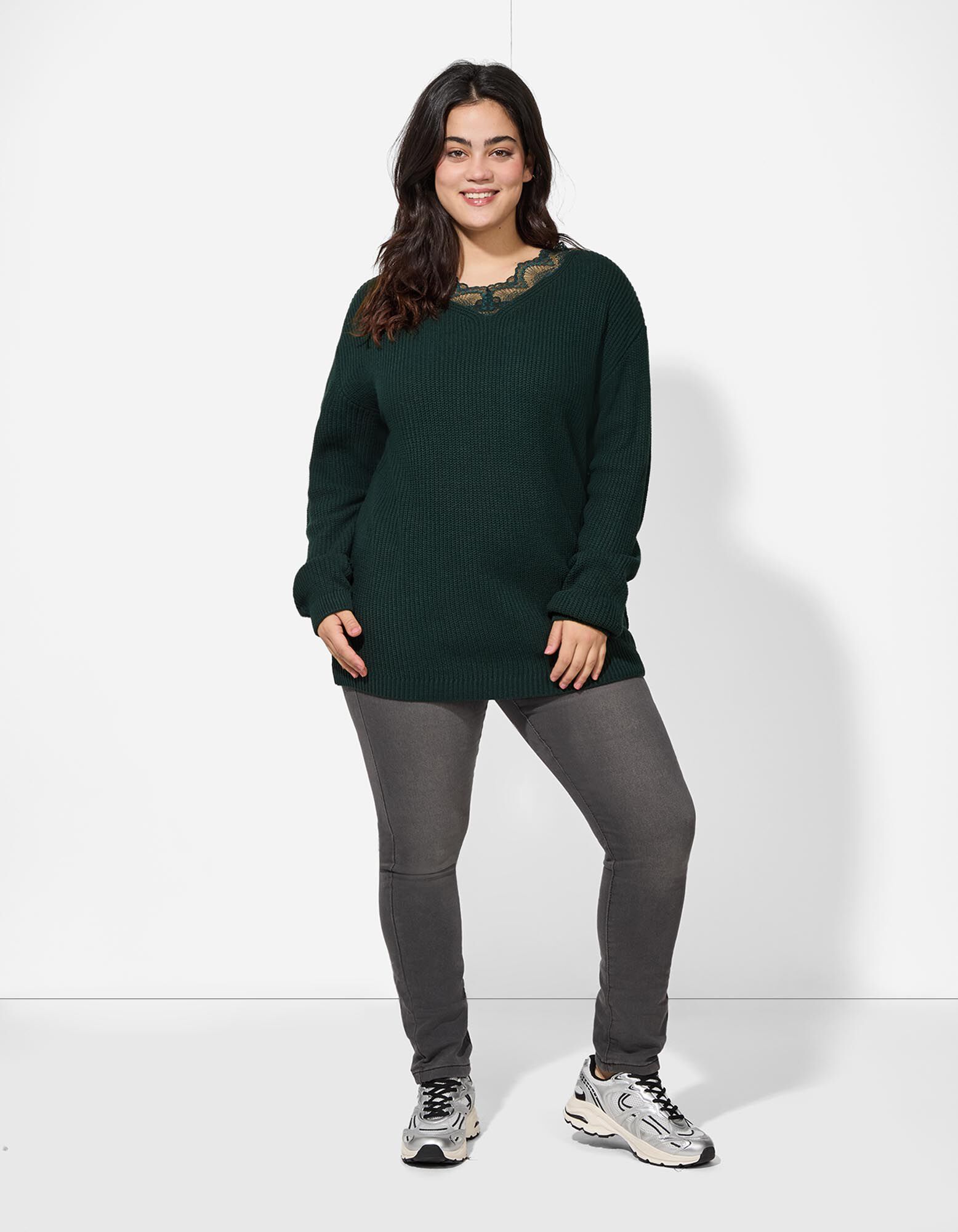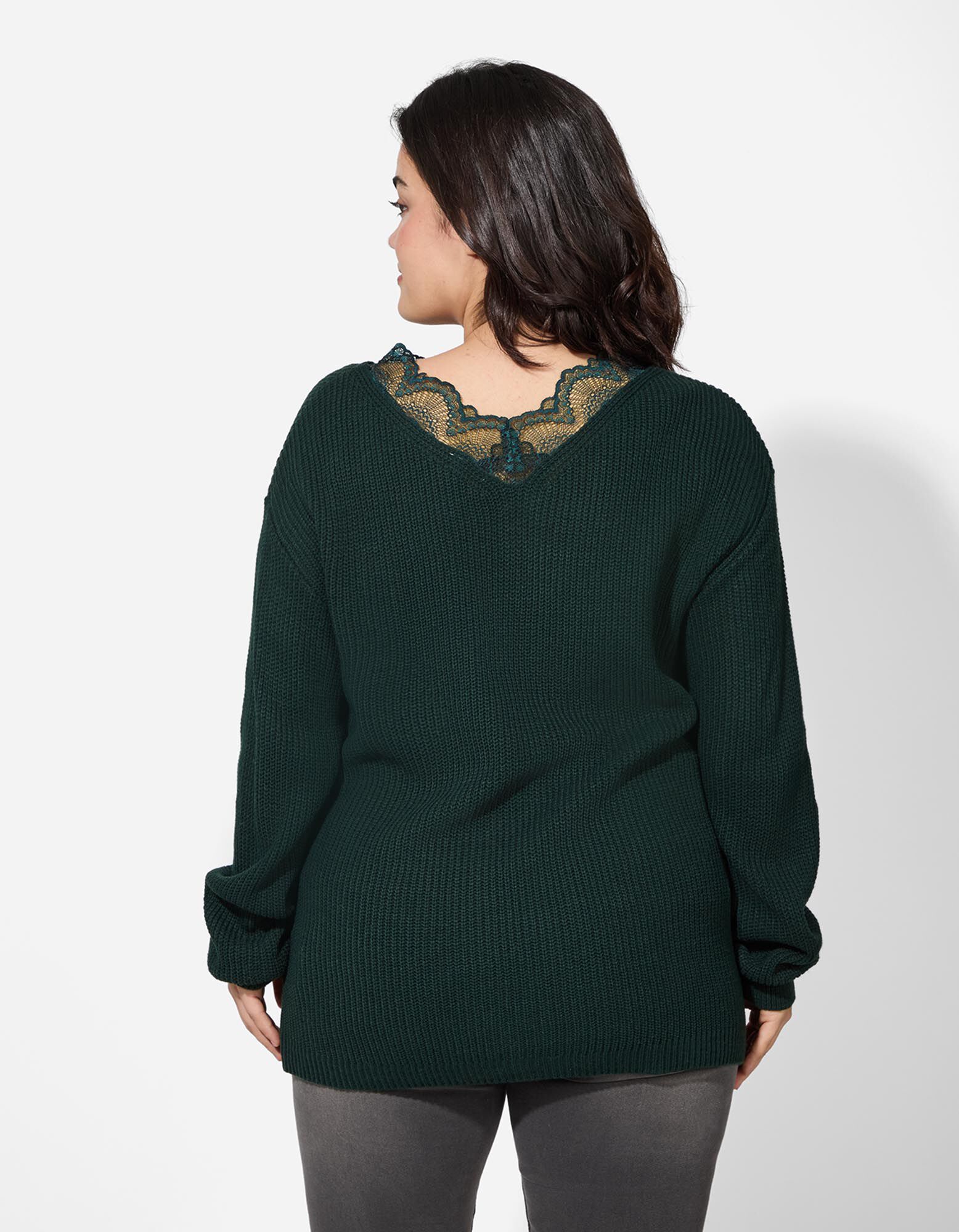 Pulovr - Krajková aplikace - zelena