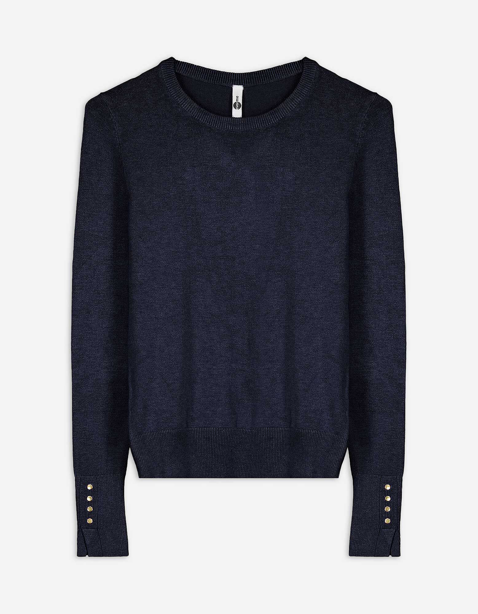 Žebrovaný pletený svetr - Ozdobné knoflíky - tmave modra