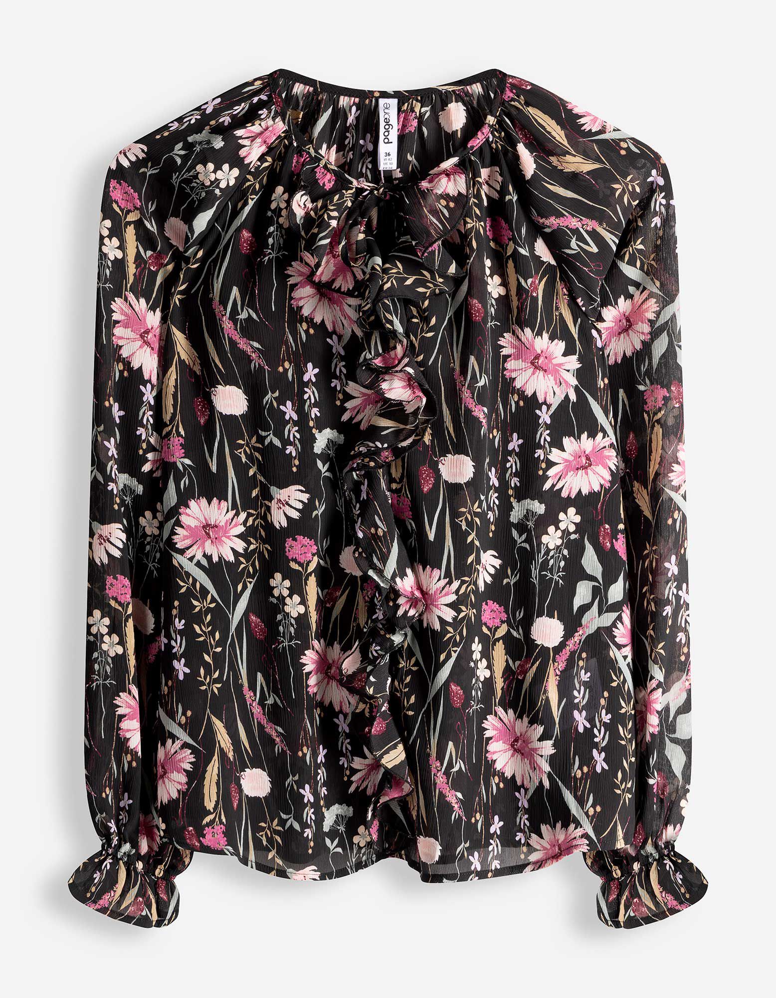 Bluse - Volants - schwarz