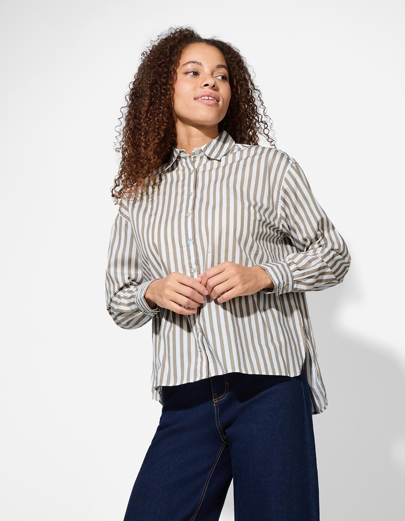 Hemdbluse - Streifen - hellgrau