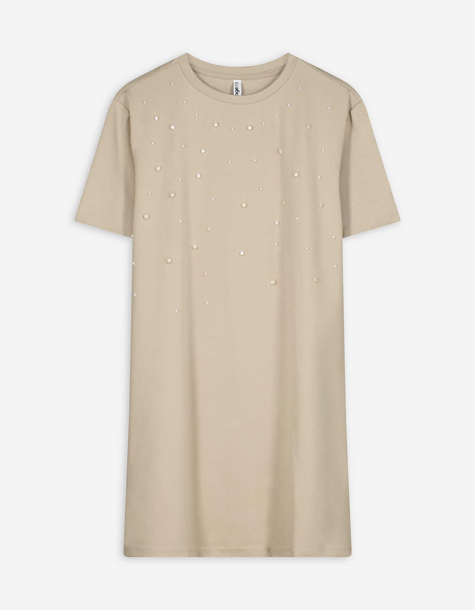 Kleid - Zierperlen - beige