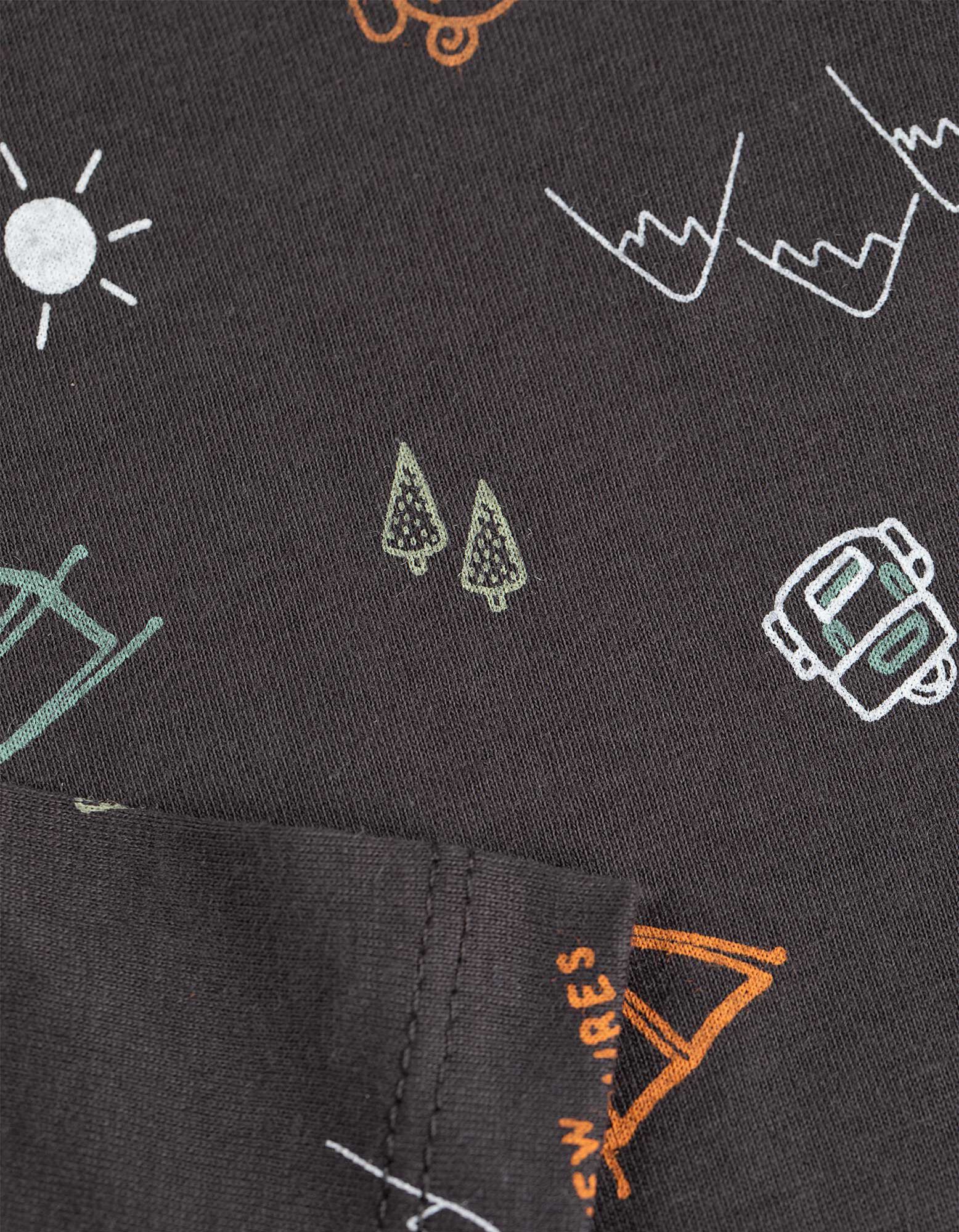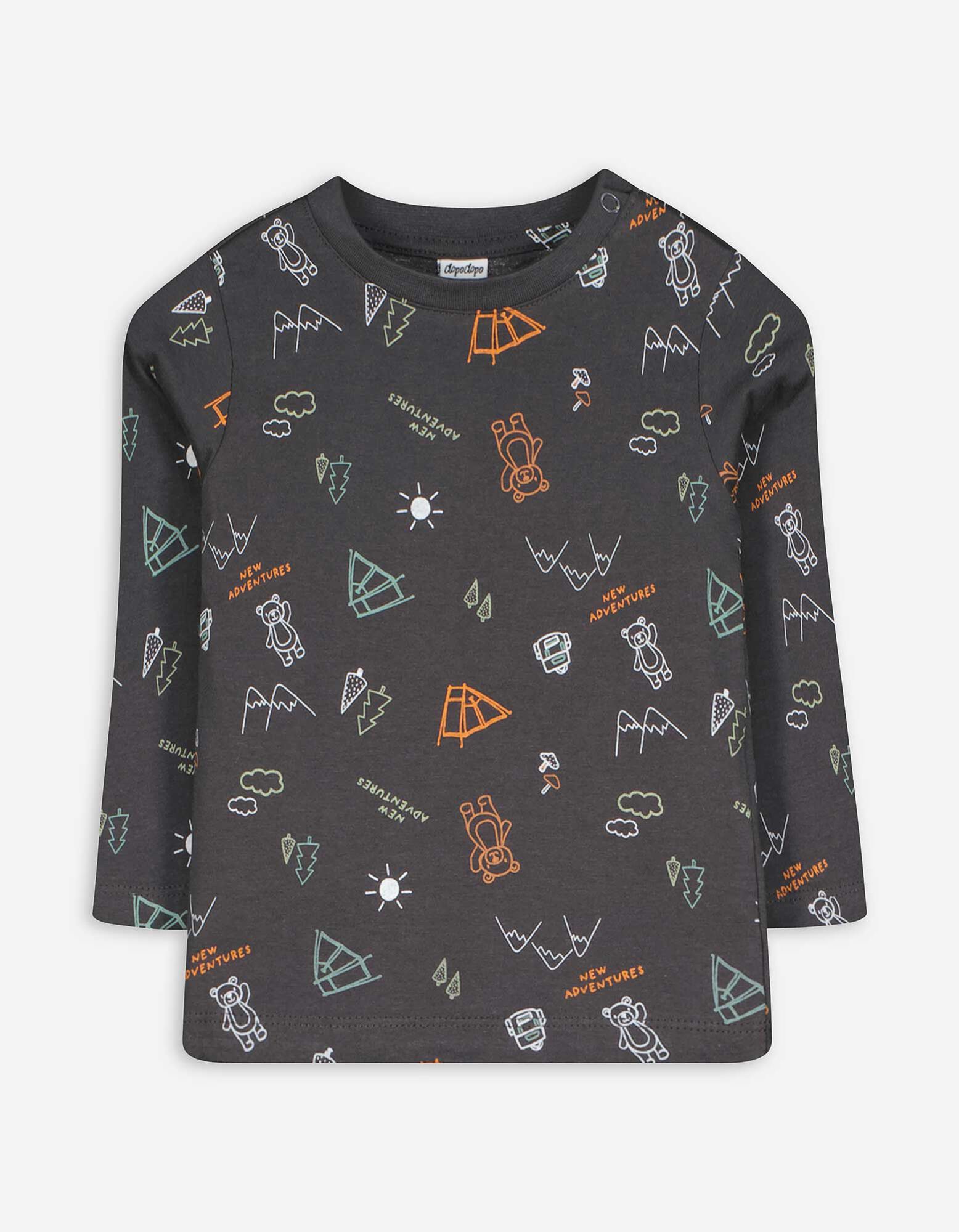 Langarmshirt - Allover-Print - dunkelgrau