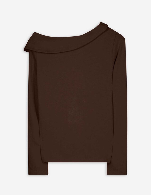 Langarmshirt - Schulterfrei - dunkelbraun