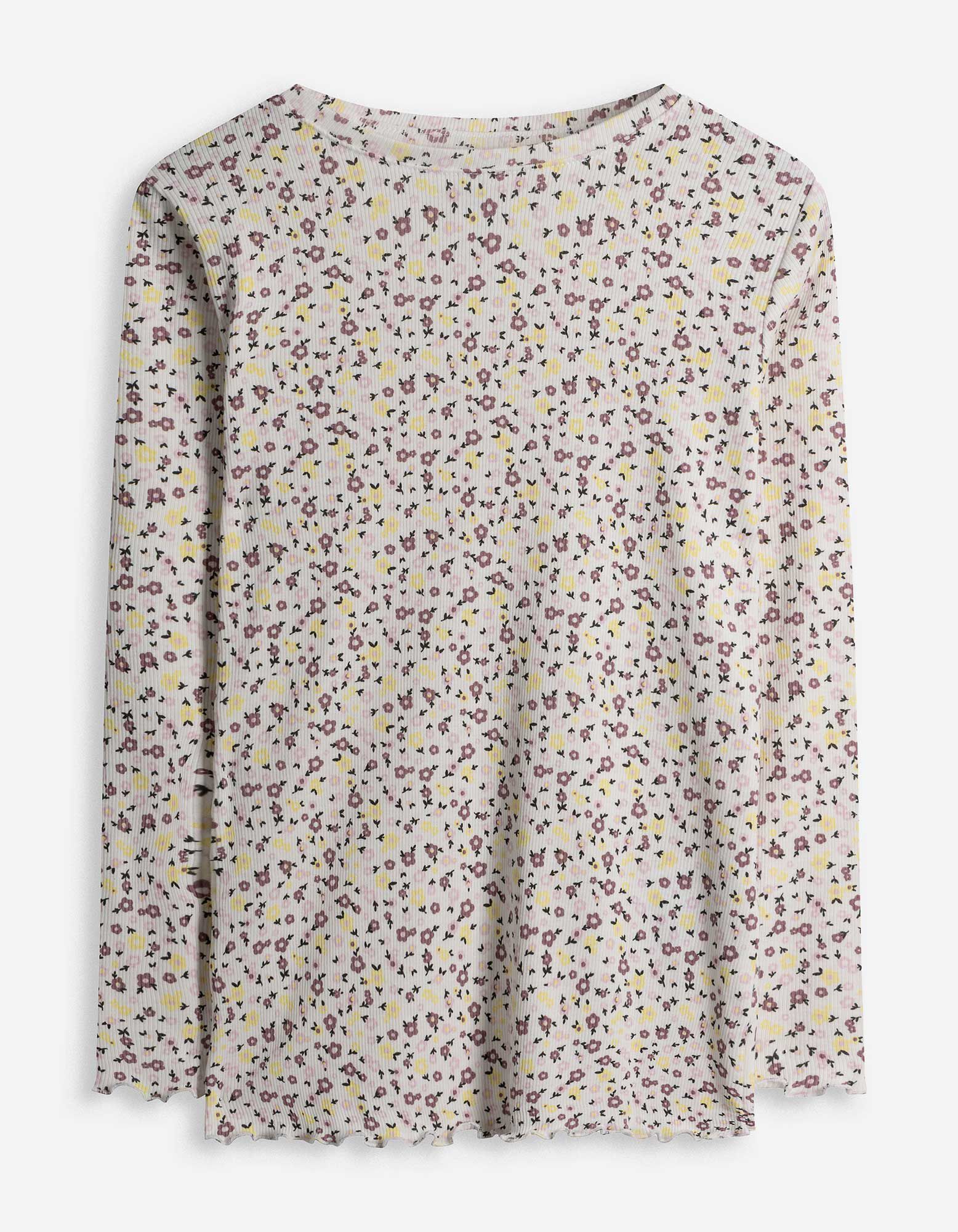 Langarmshirt - Rippenstruktur - weiß