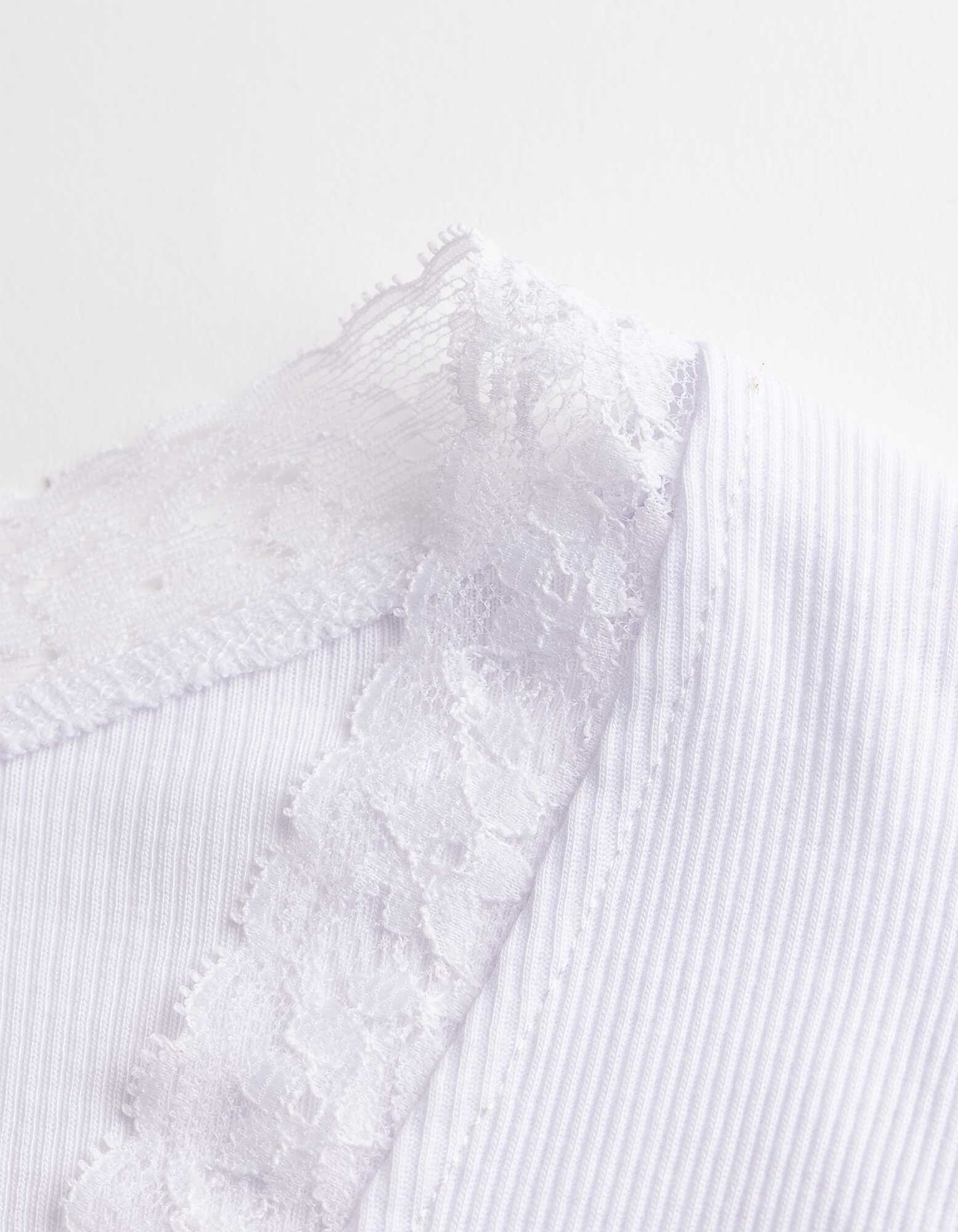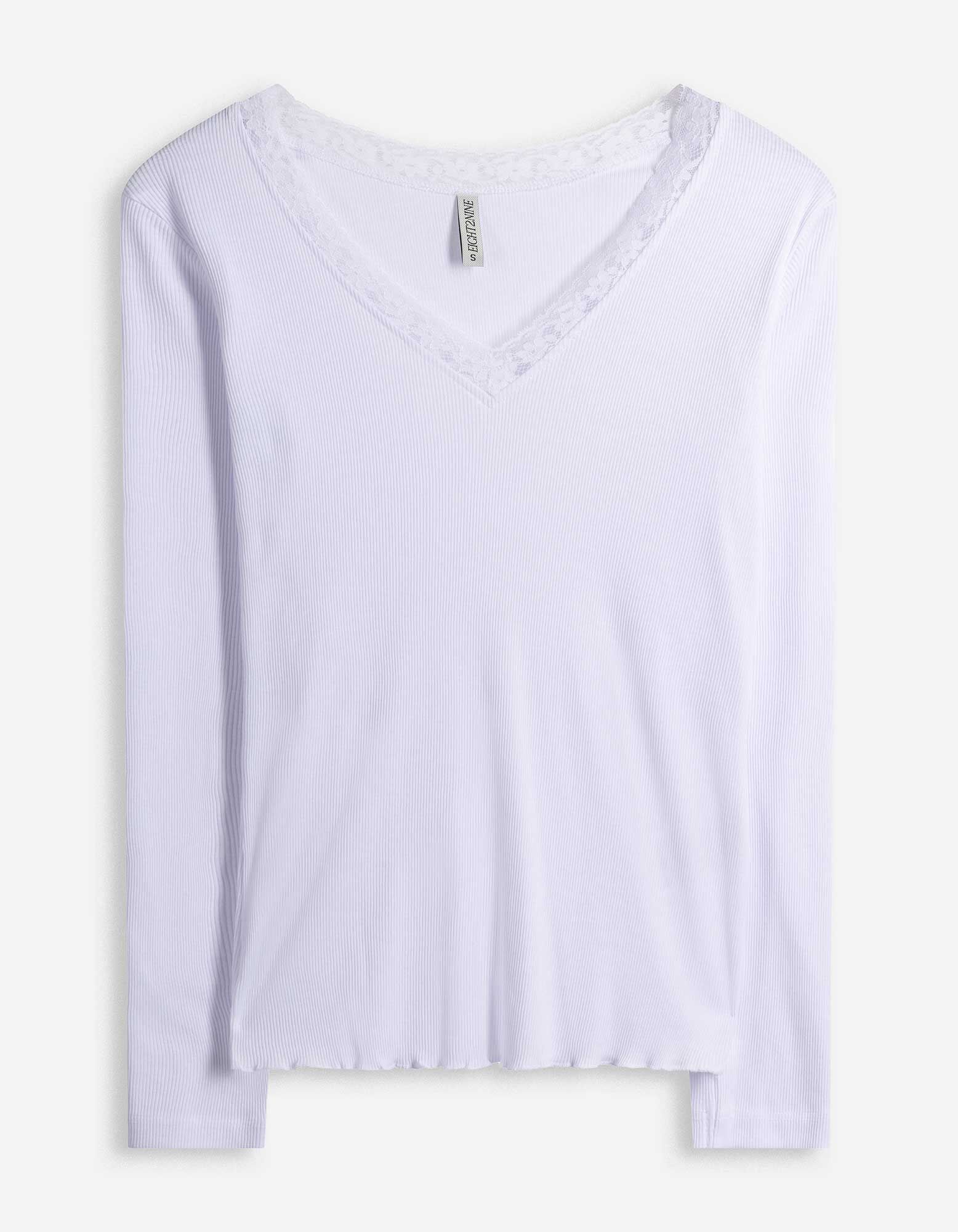 Langarmshirt - Spitzenbesatz - weiß
