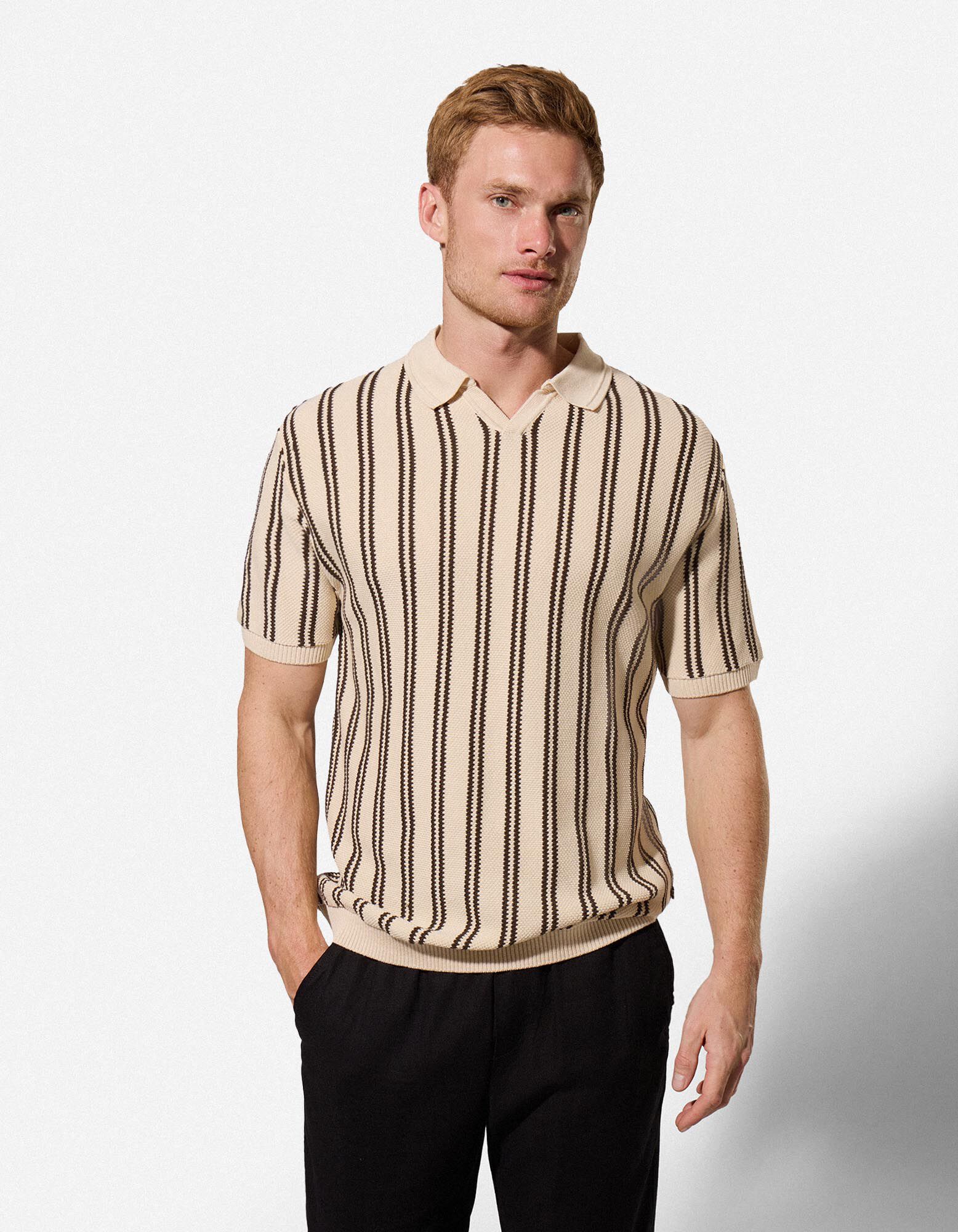 Poloshirt - Streifen - beige