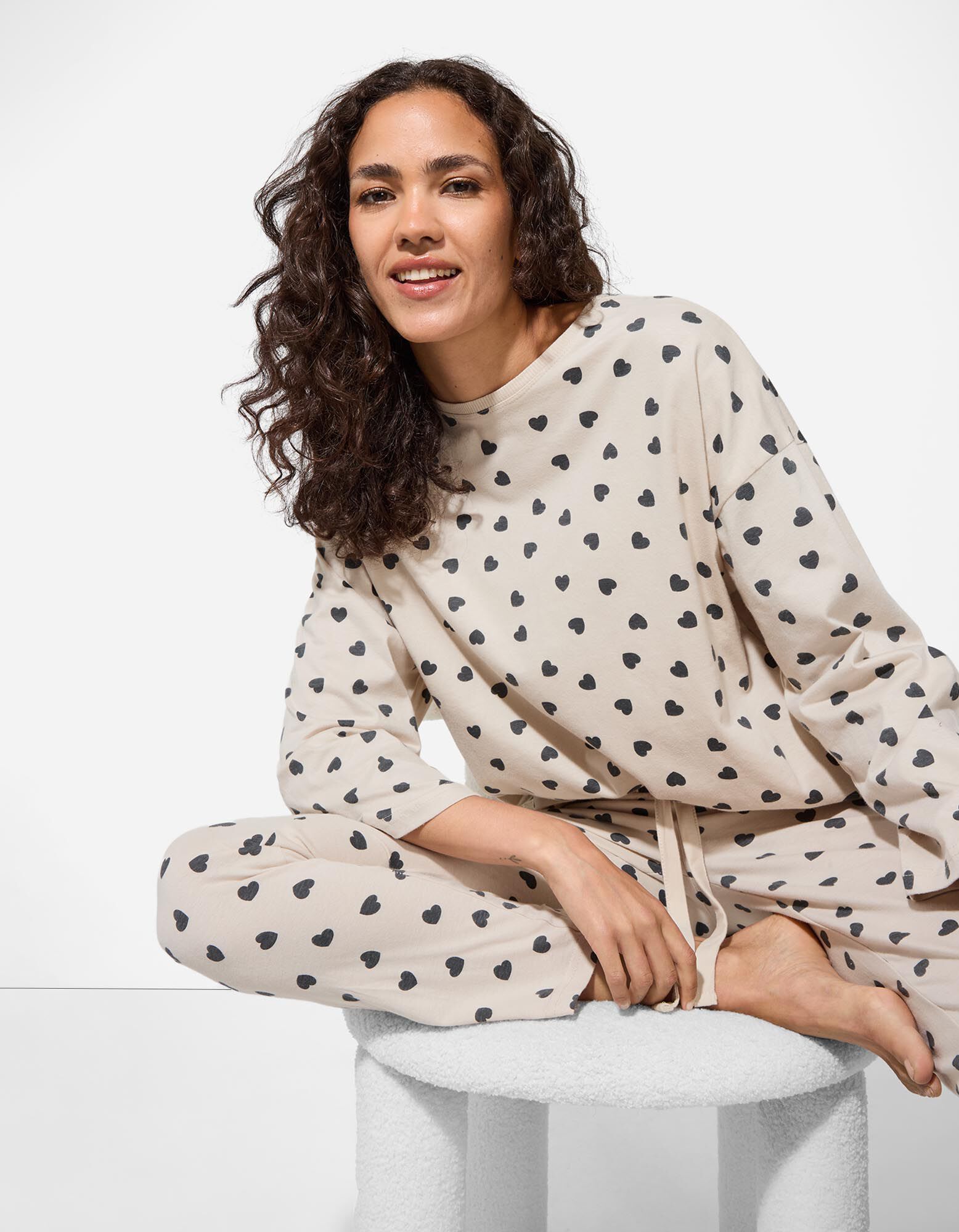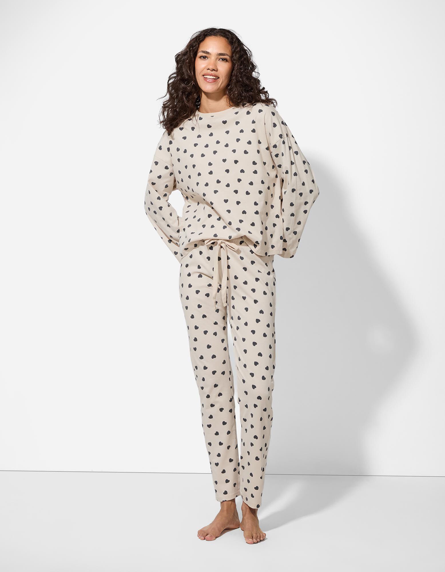 Pyjamaoberteil - Baumwolle - beige