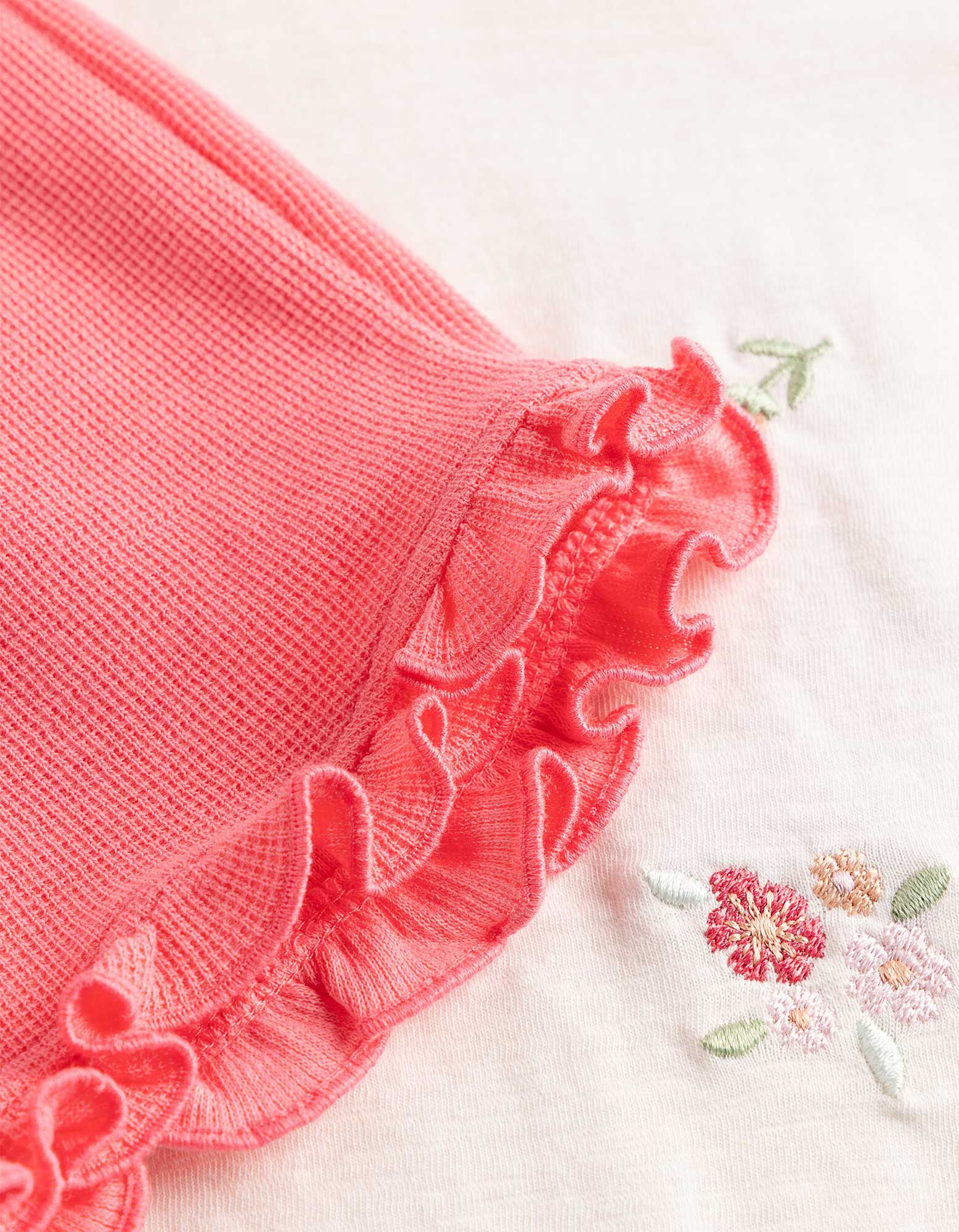 • Details: Volants, Weiches Material, Stickereien