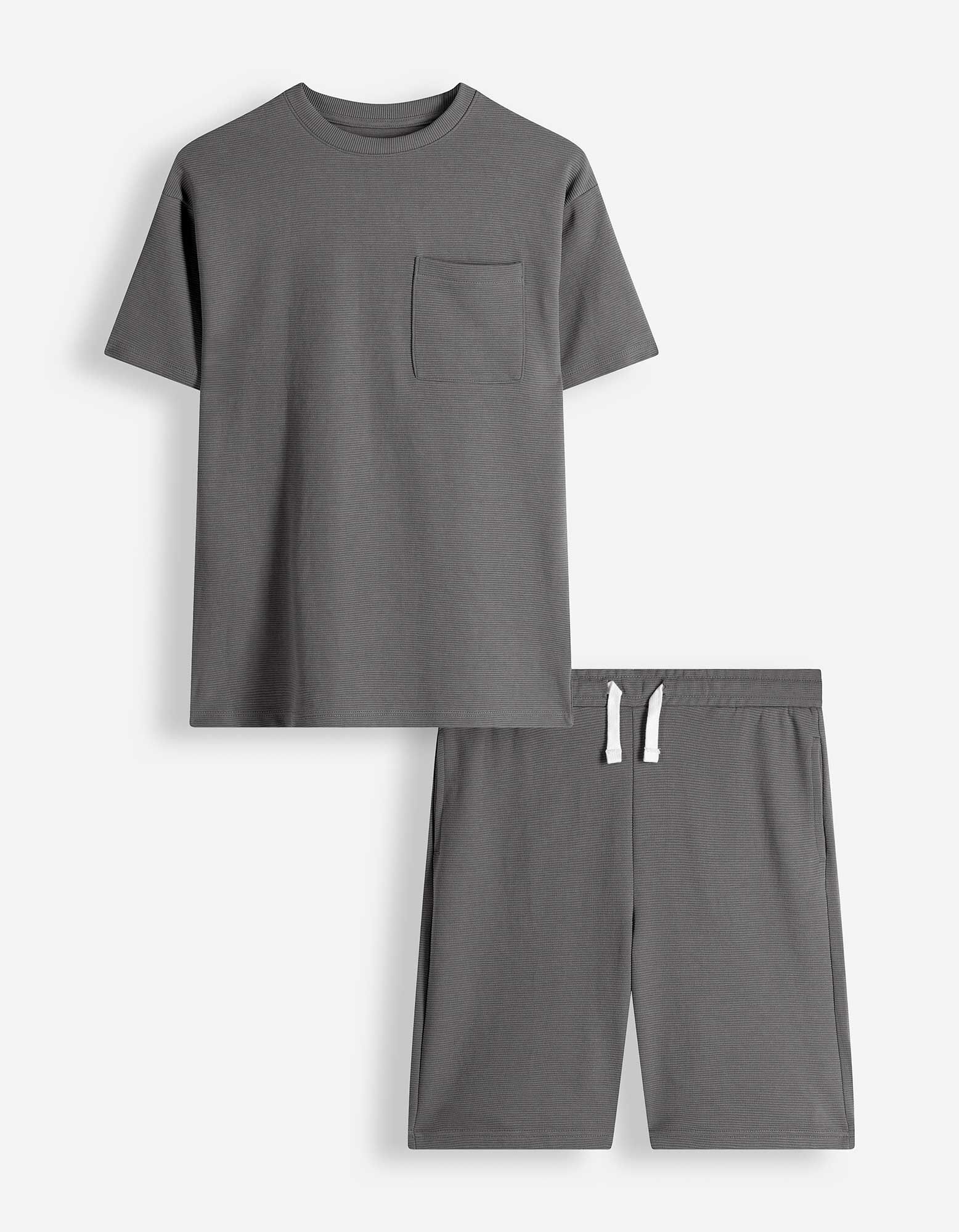Set aus T-Shirt und Hose - Gerippt - dunkelgrau
