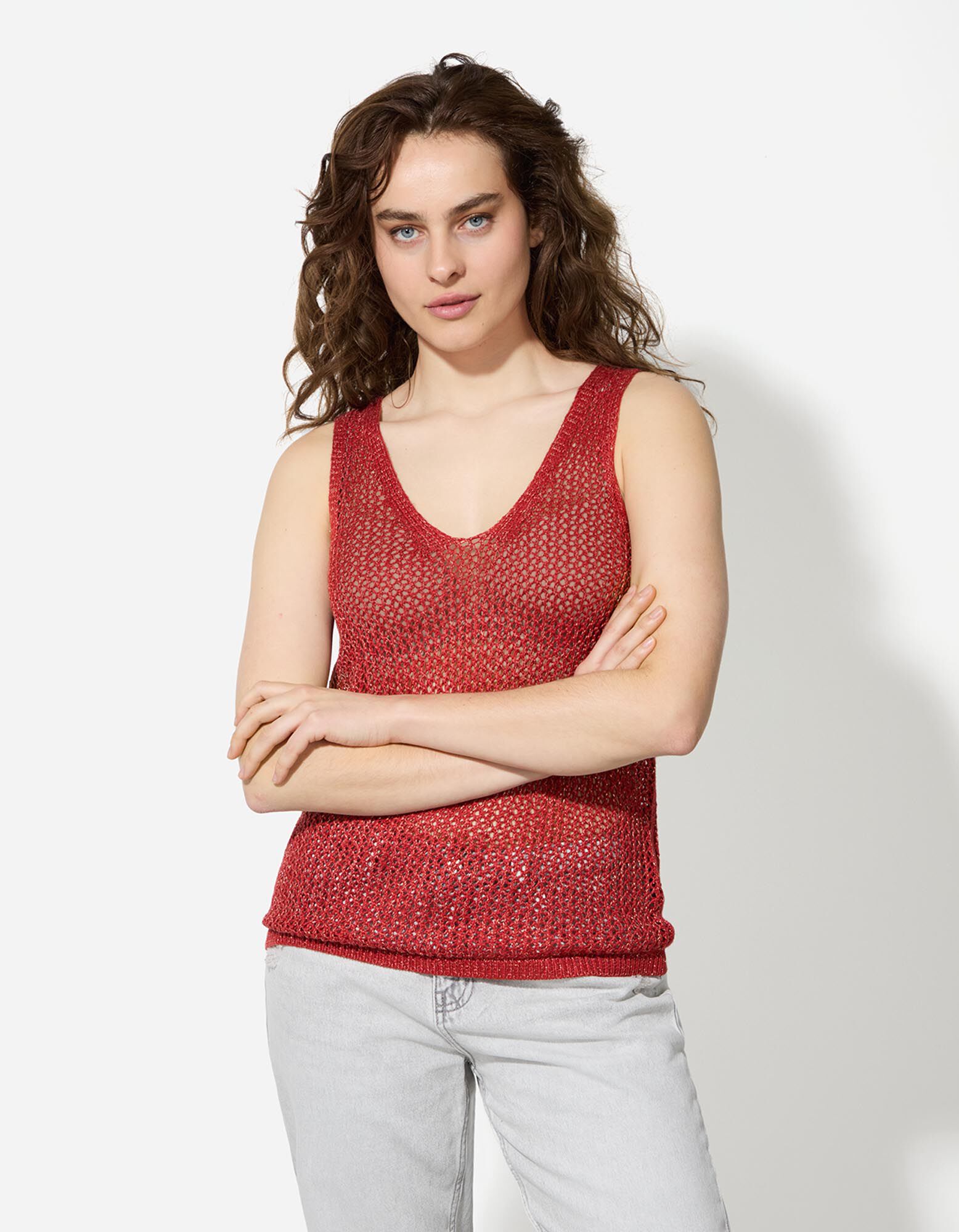 Stricktop - Lurex - dunkelrot