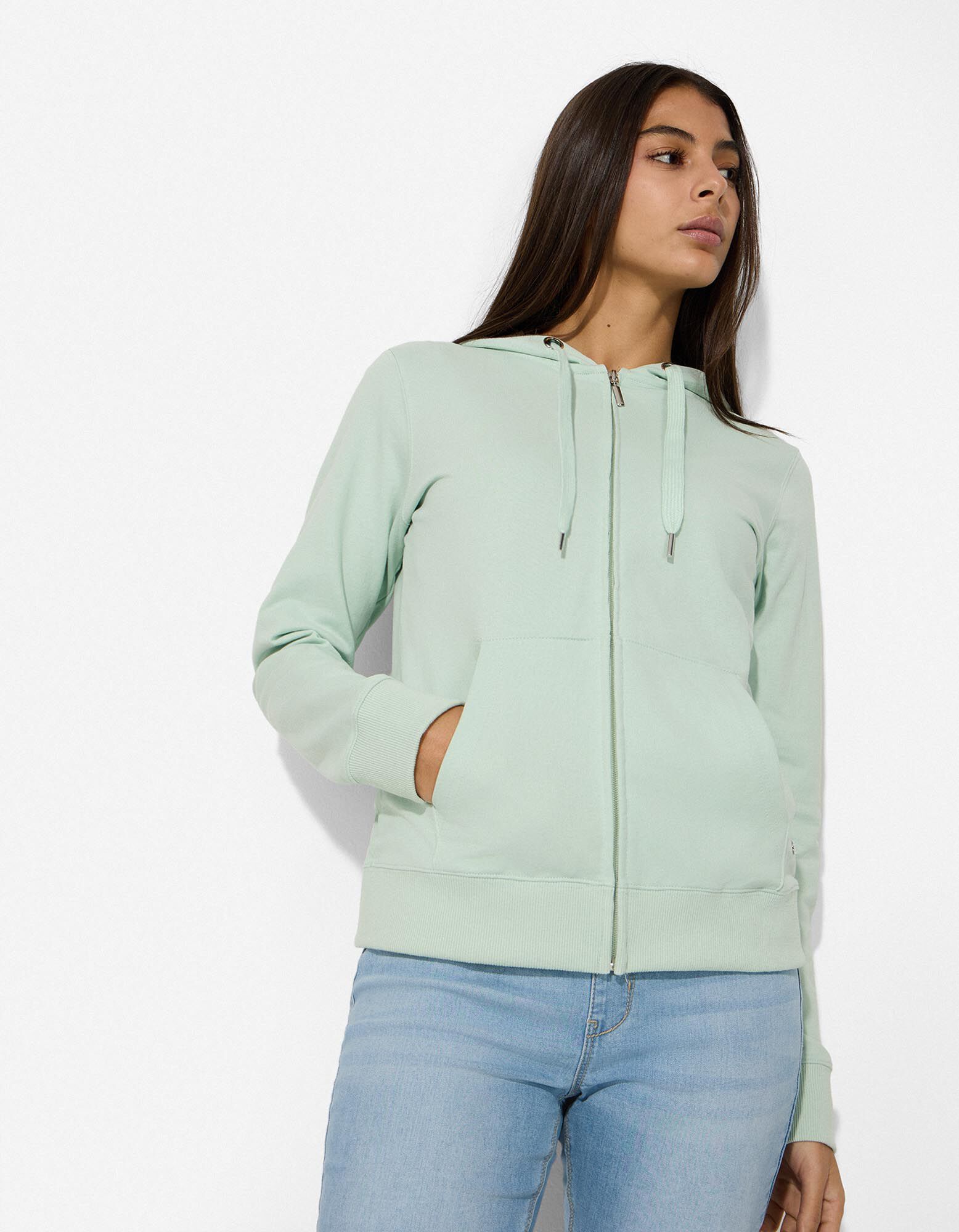 Sweatjacke - Kapuze mit Tunnelzug - grün
