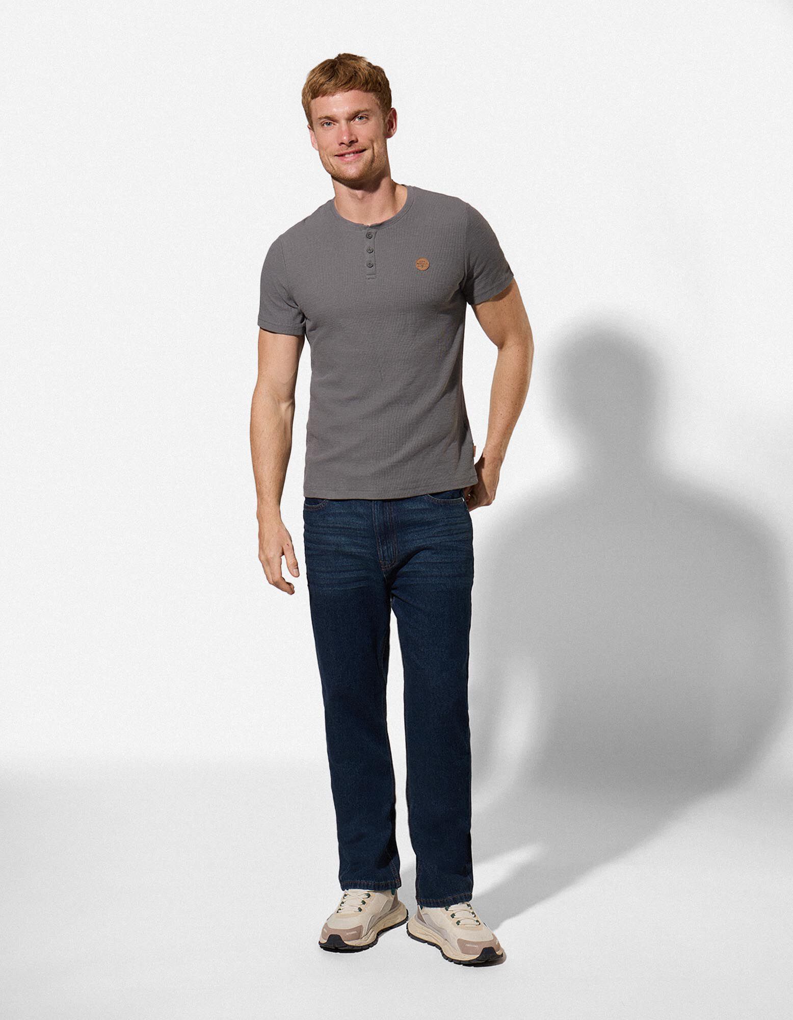 T-Shirt - Knopfleiste - dunkelgrau