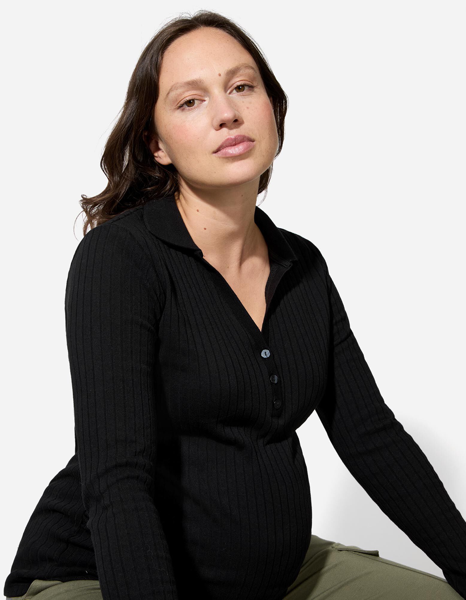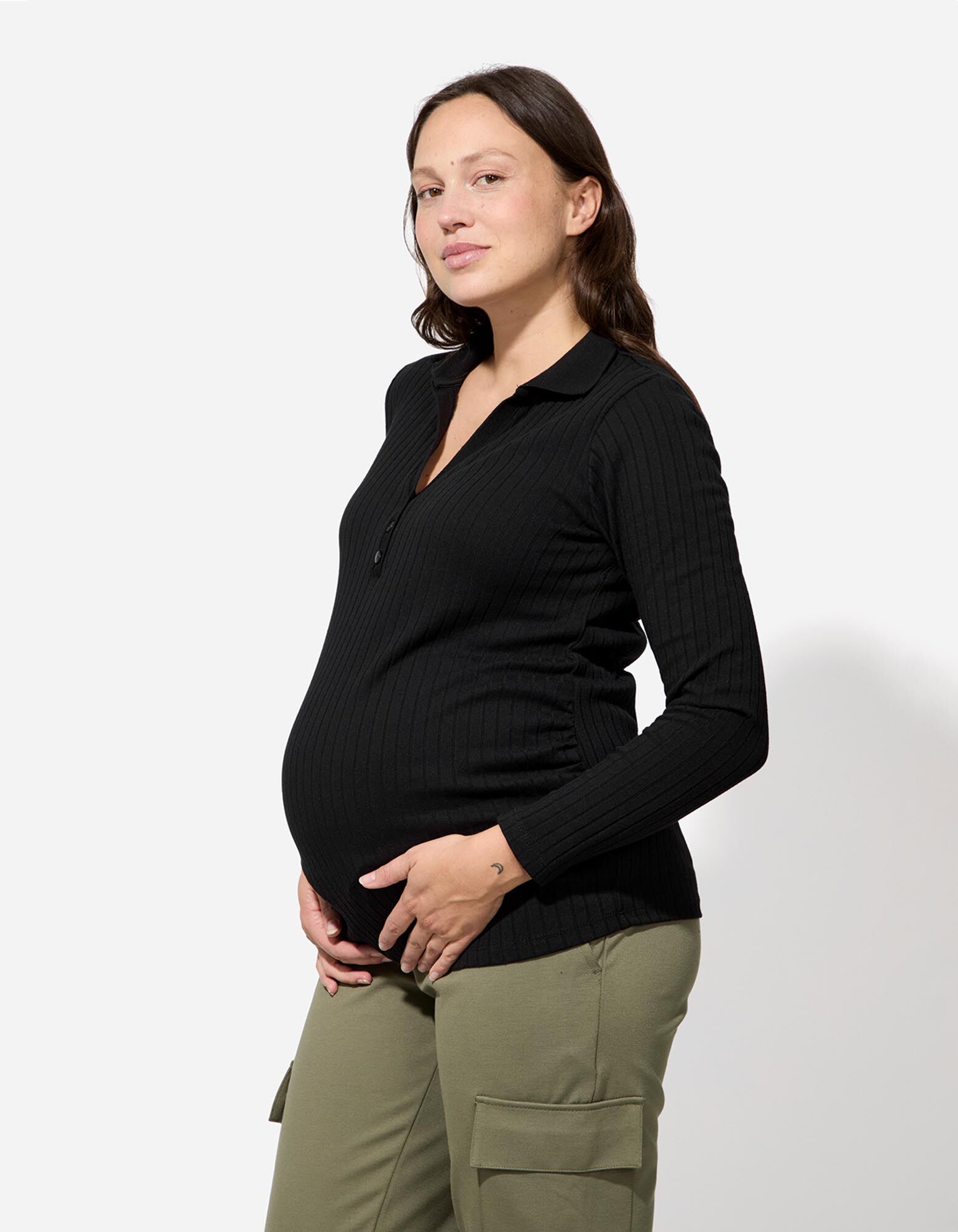 Umstandsshirt - Hemdkragen - schwarz