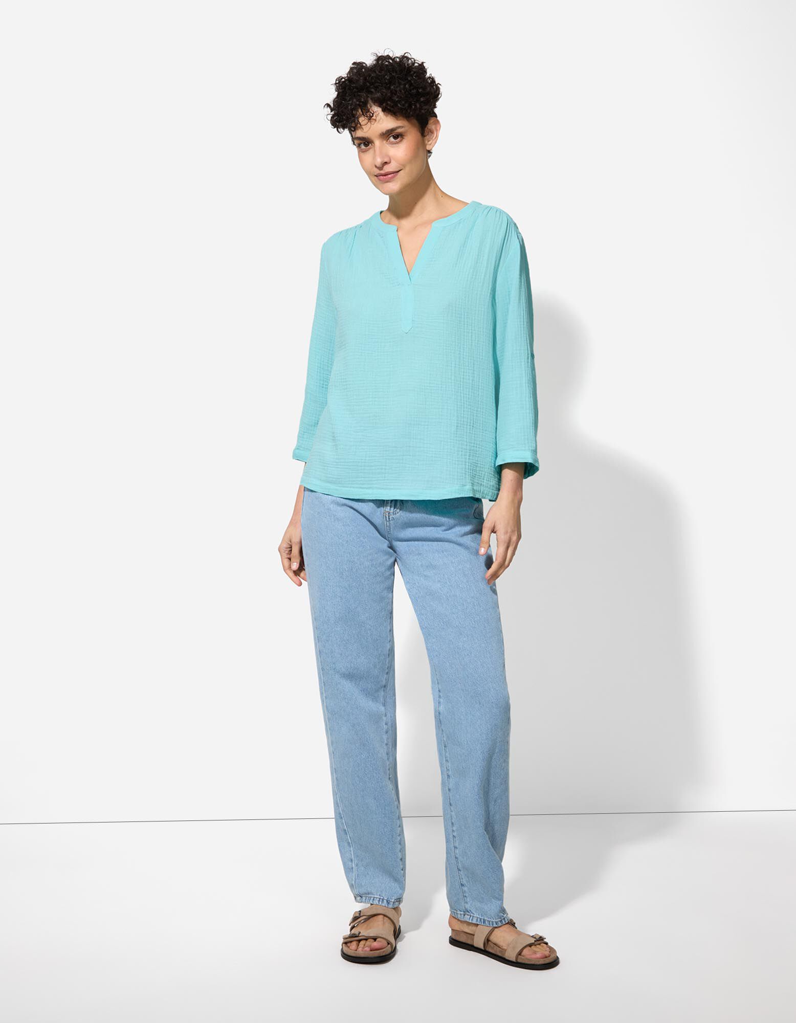 Bluse - einfarbig - türkis