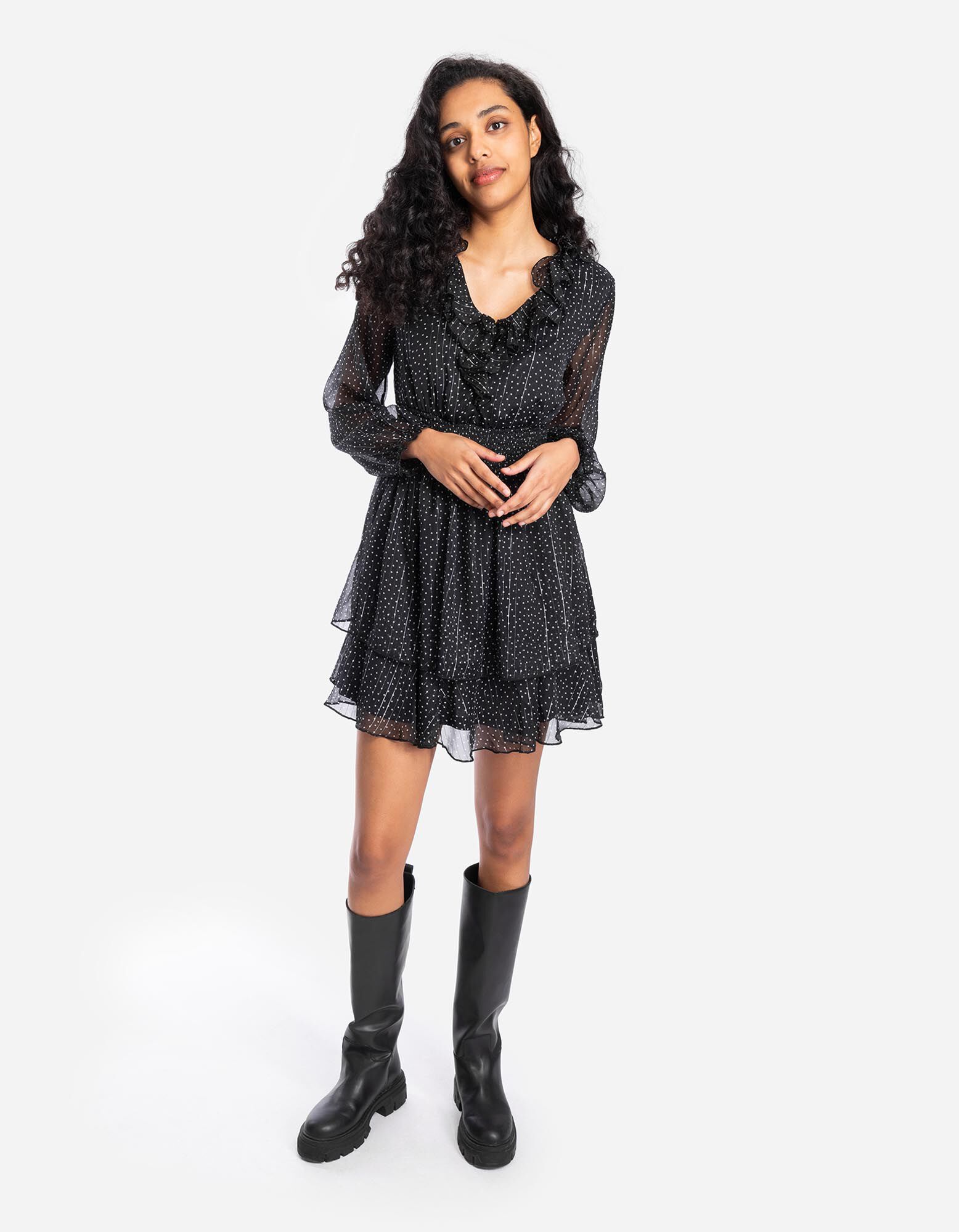 Blusenkleid - Chiffon - schwarz