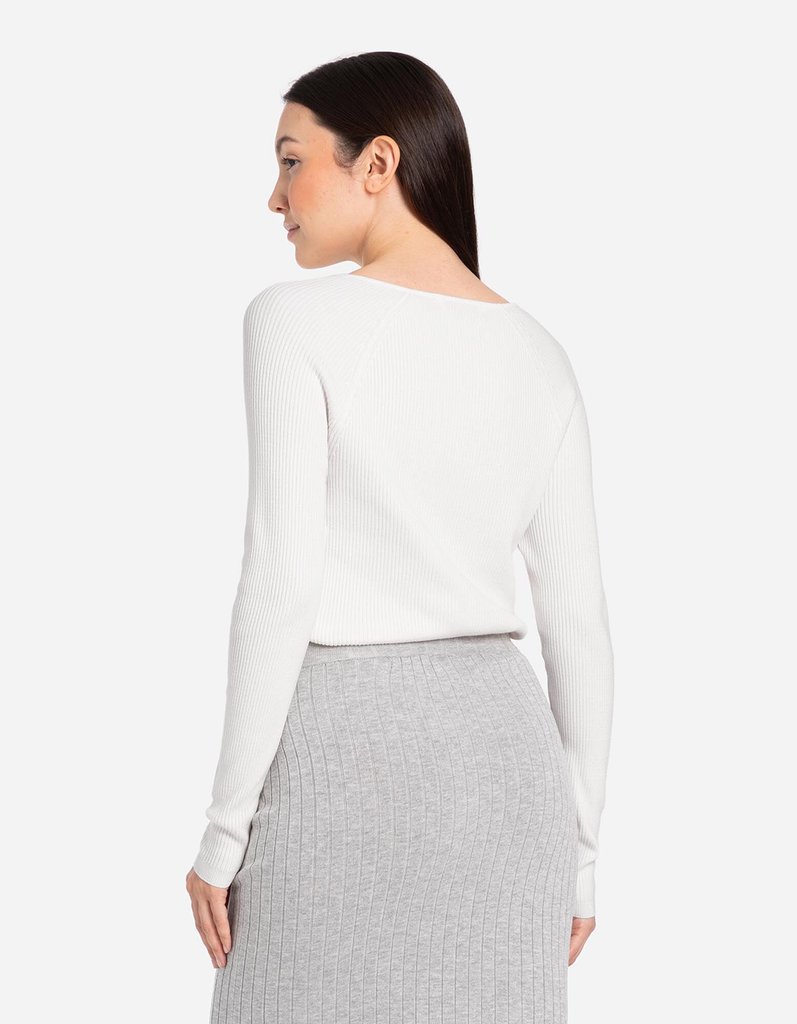 Langarmshirt - Rippstrick - weiß