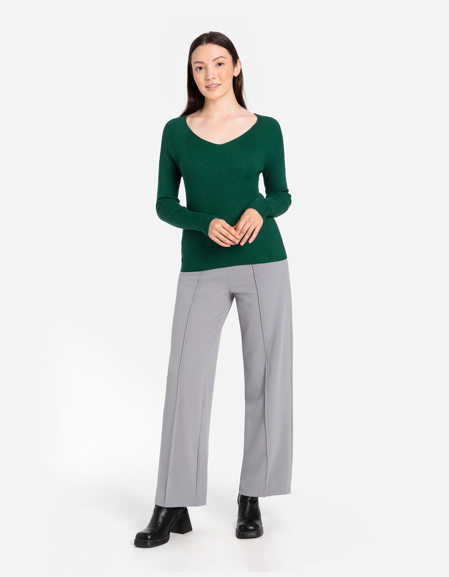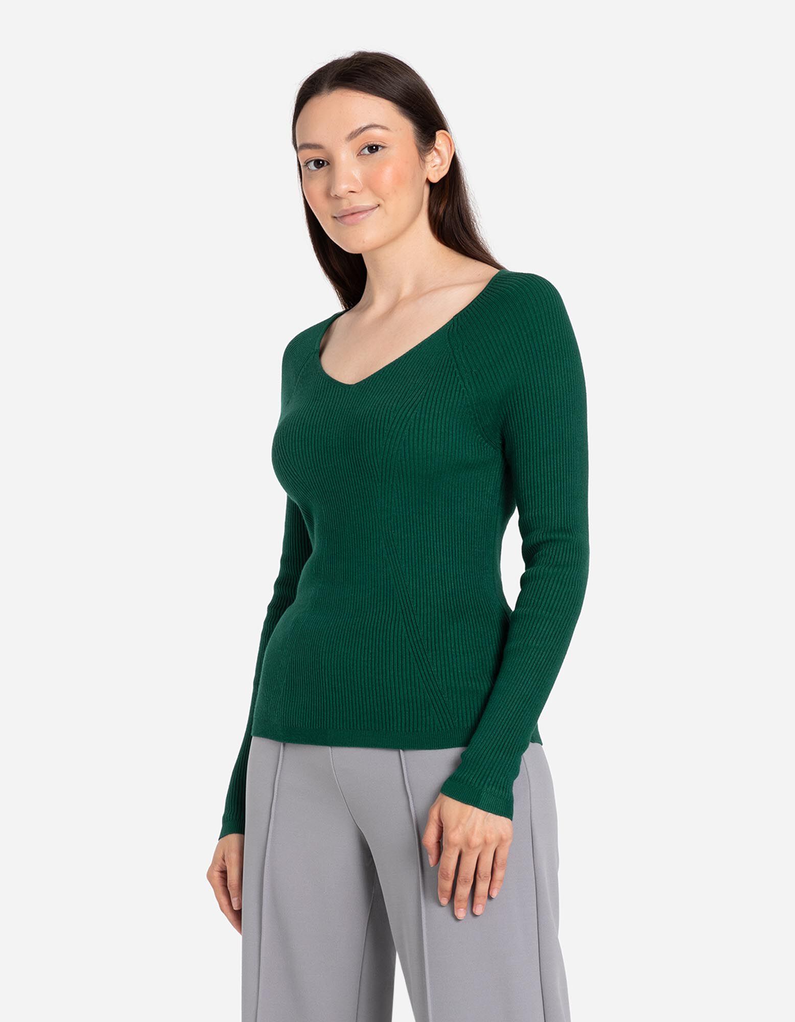 Langarmshirt - Rippstrick - dunkelgrün