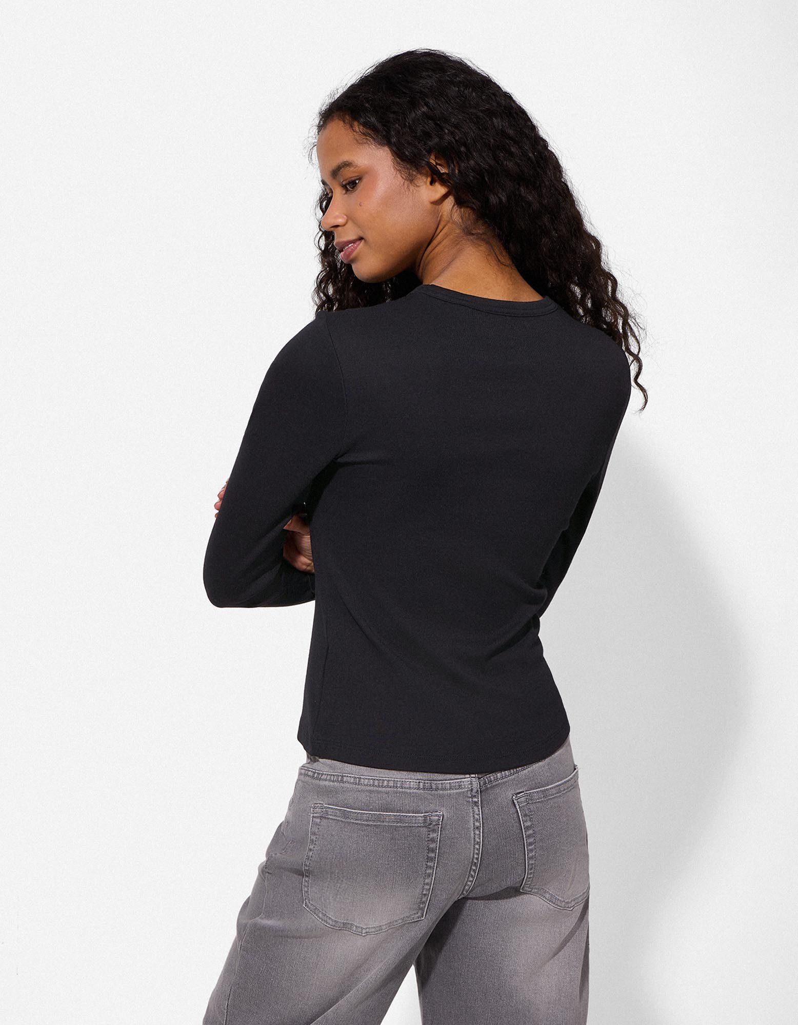 Langarmshirt - Modal-Anteil - schwarz