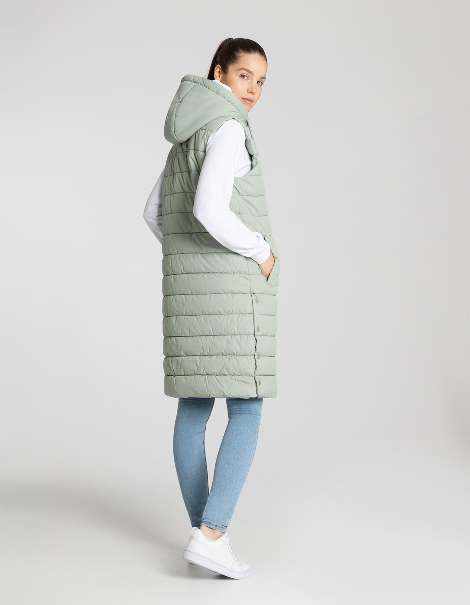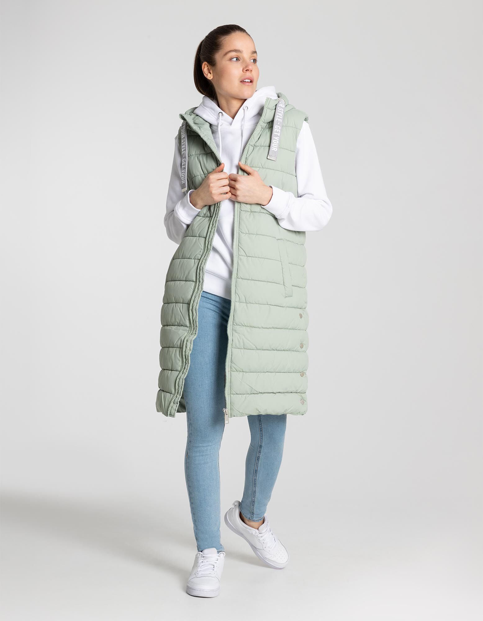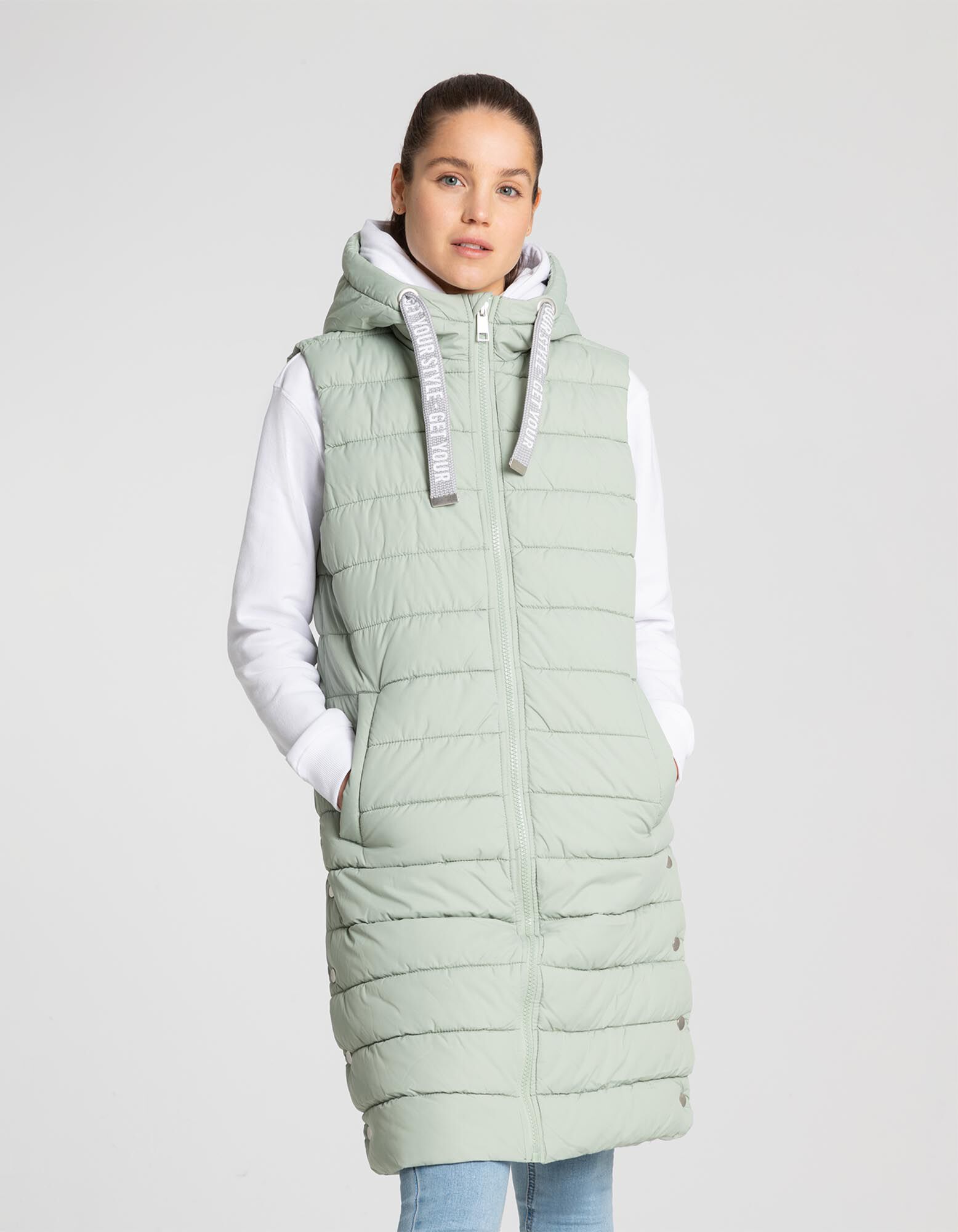 Lange Weste - Kapuze mit Tunnelzug