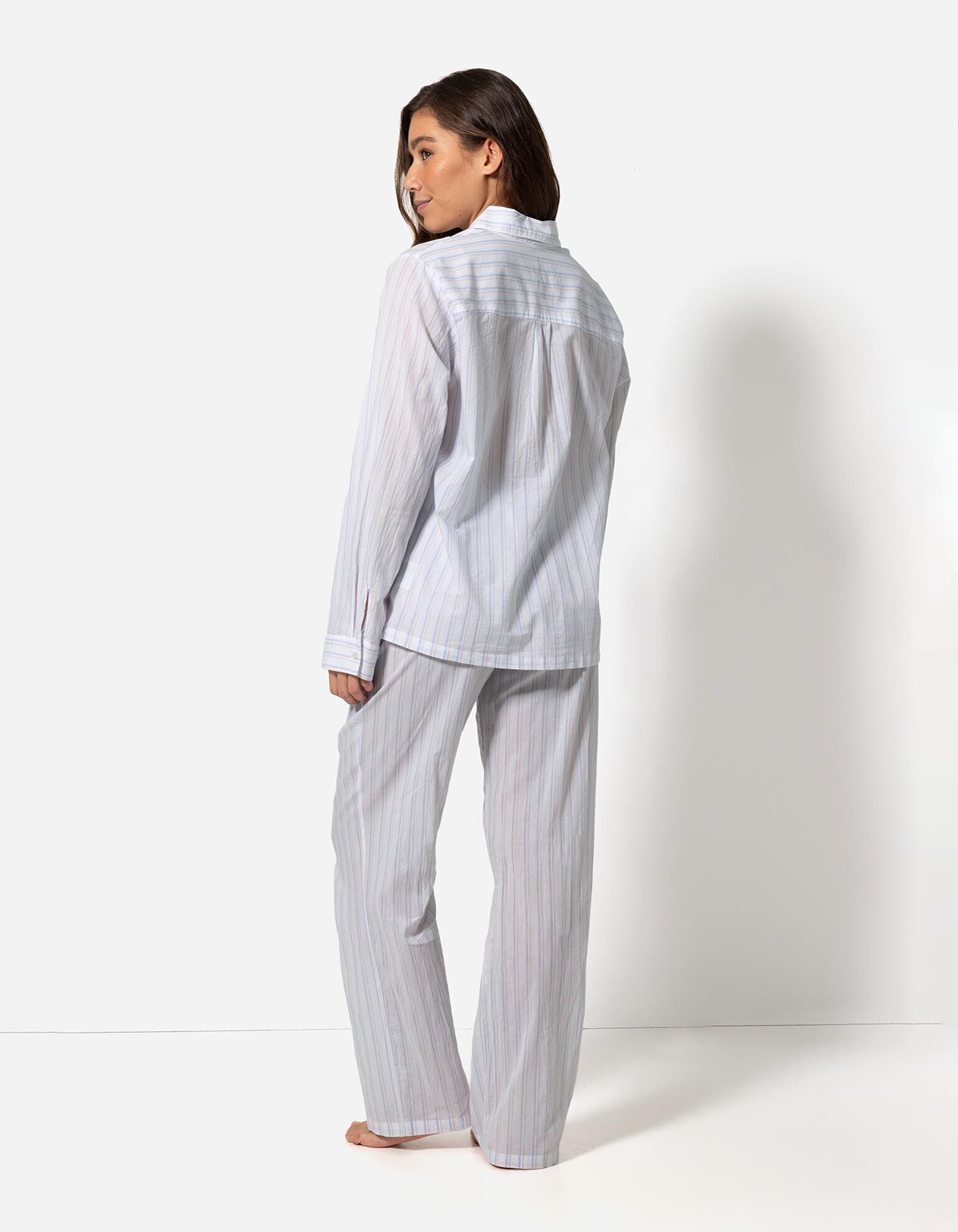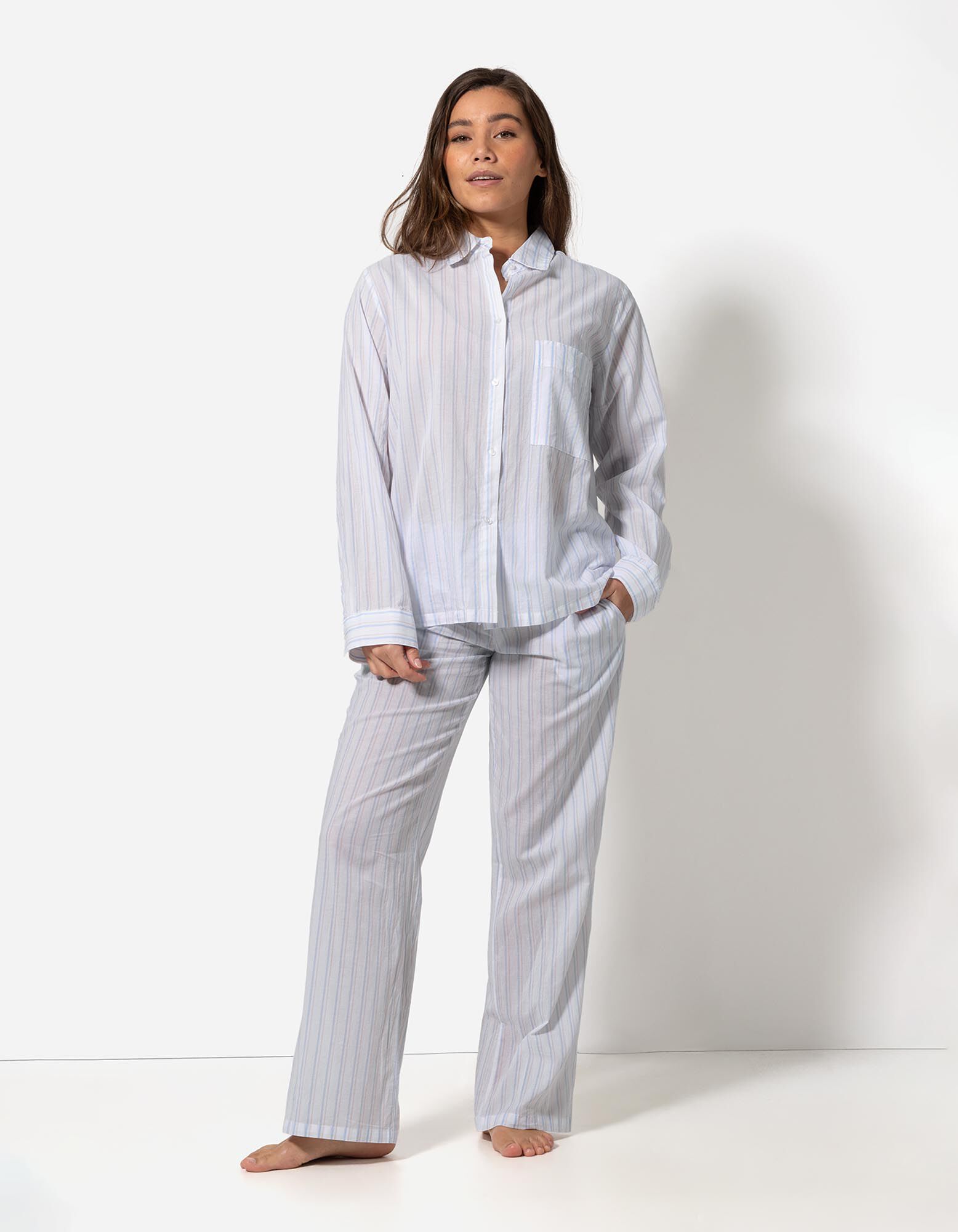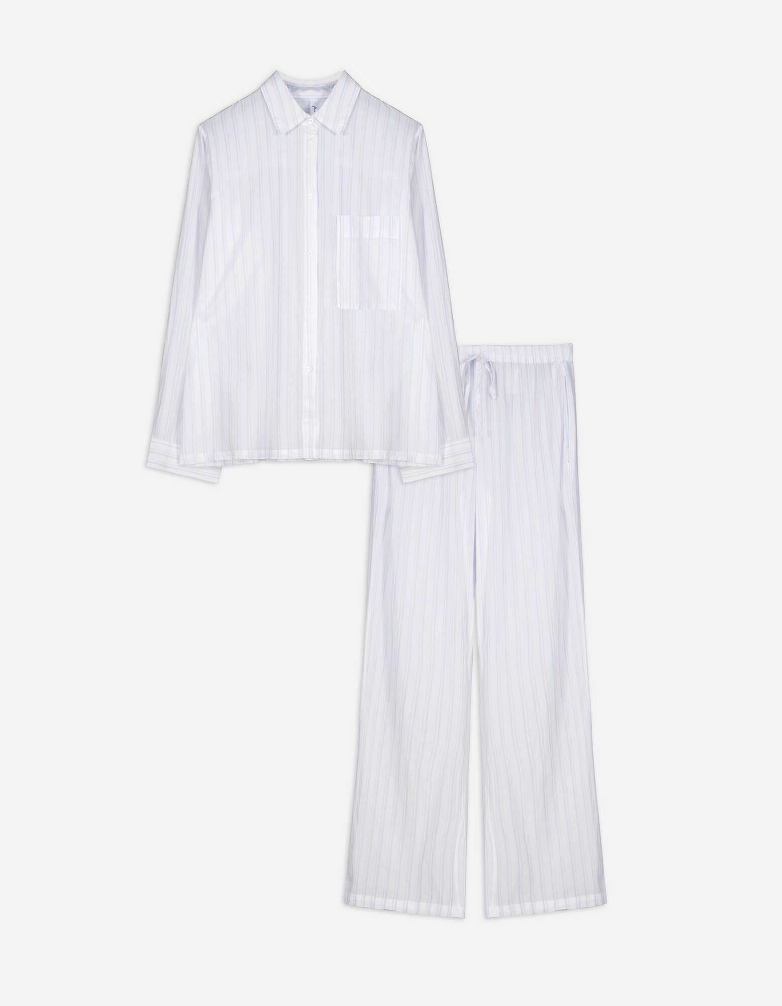 Pyjama Set aus Langarmshirt und Hose  - Streifen - weiß