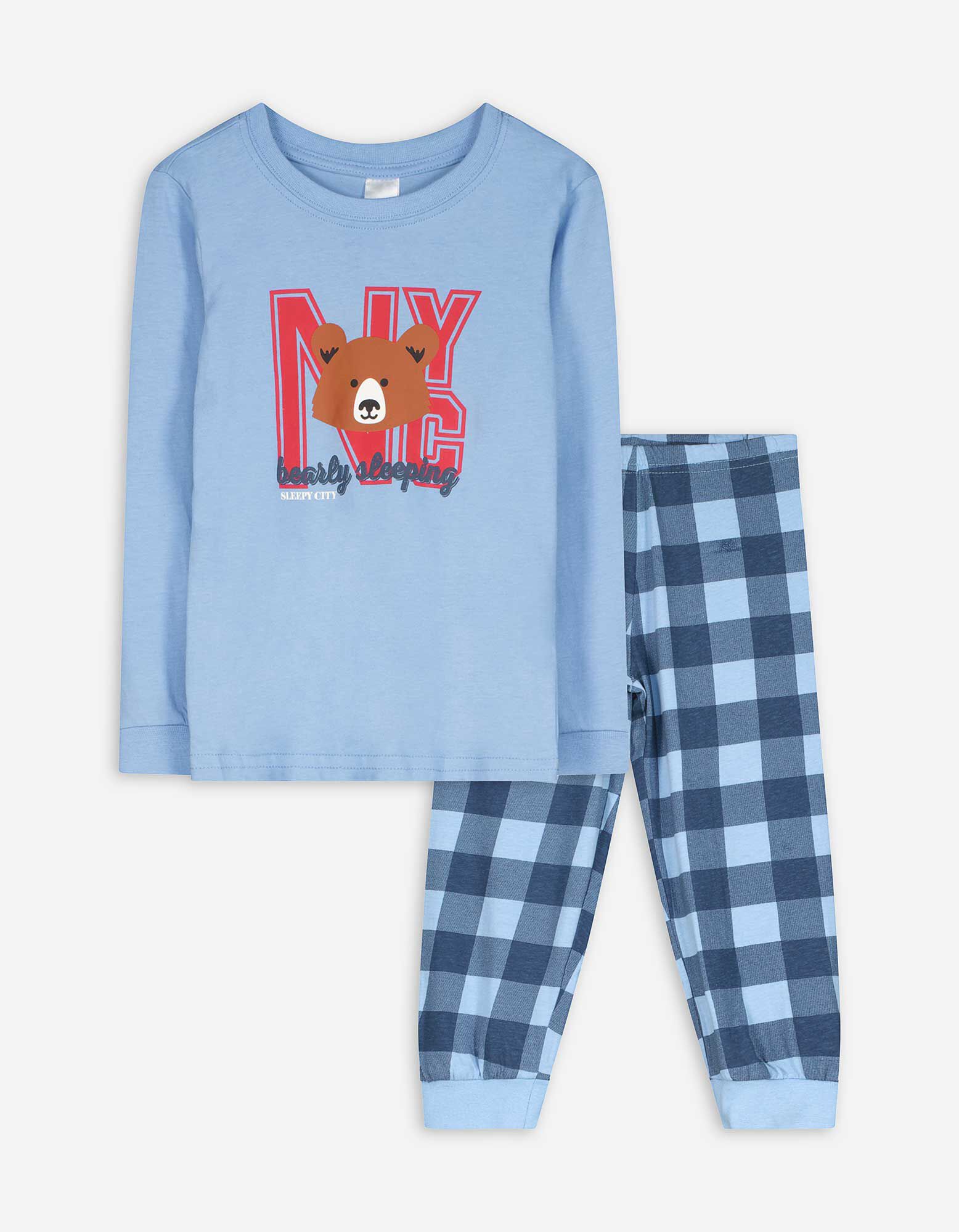 Pyjama Set aus Shirt und Hose - Mustermix - hellblau