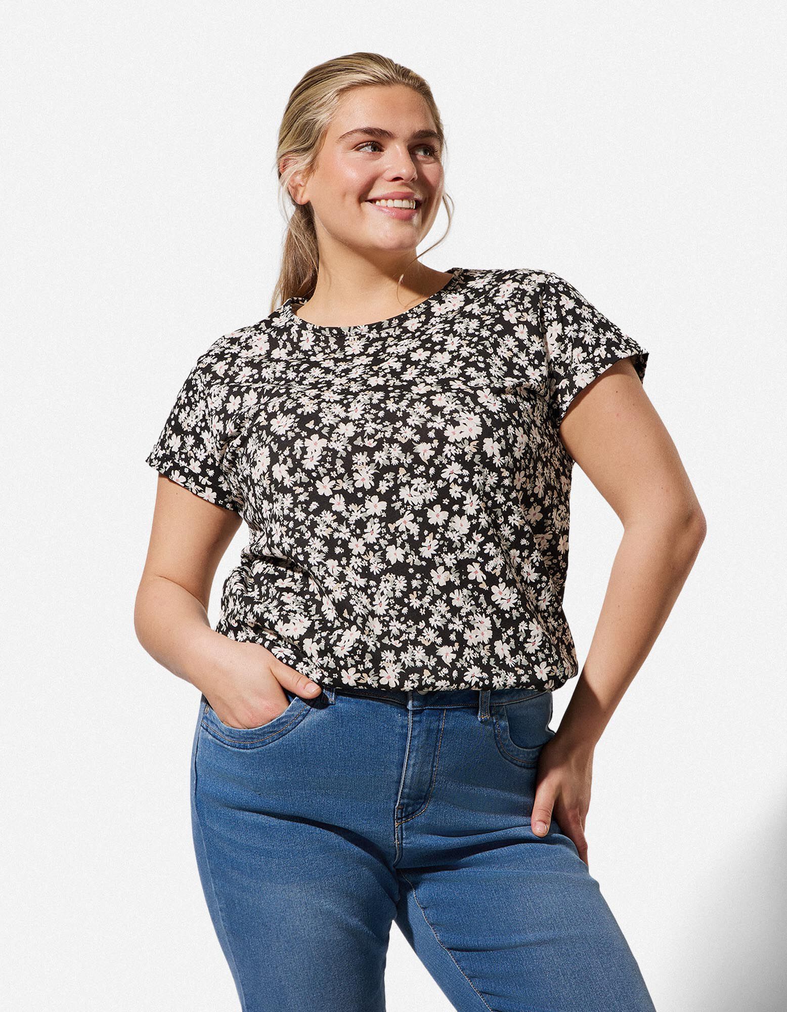 T-Shirt - Allover-Muster - schwarz