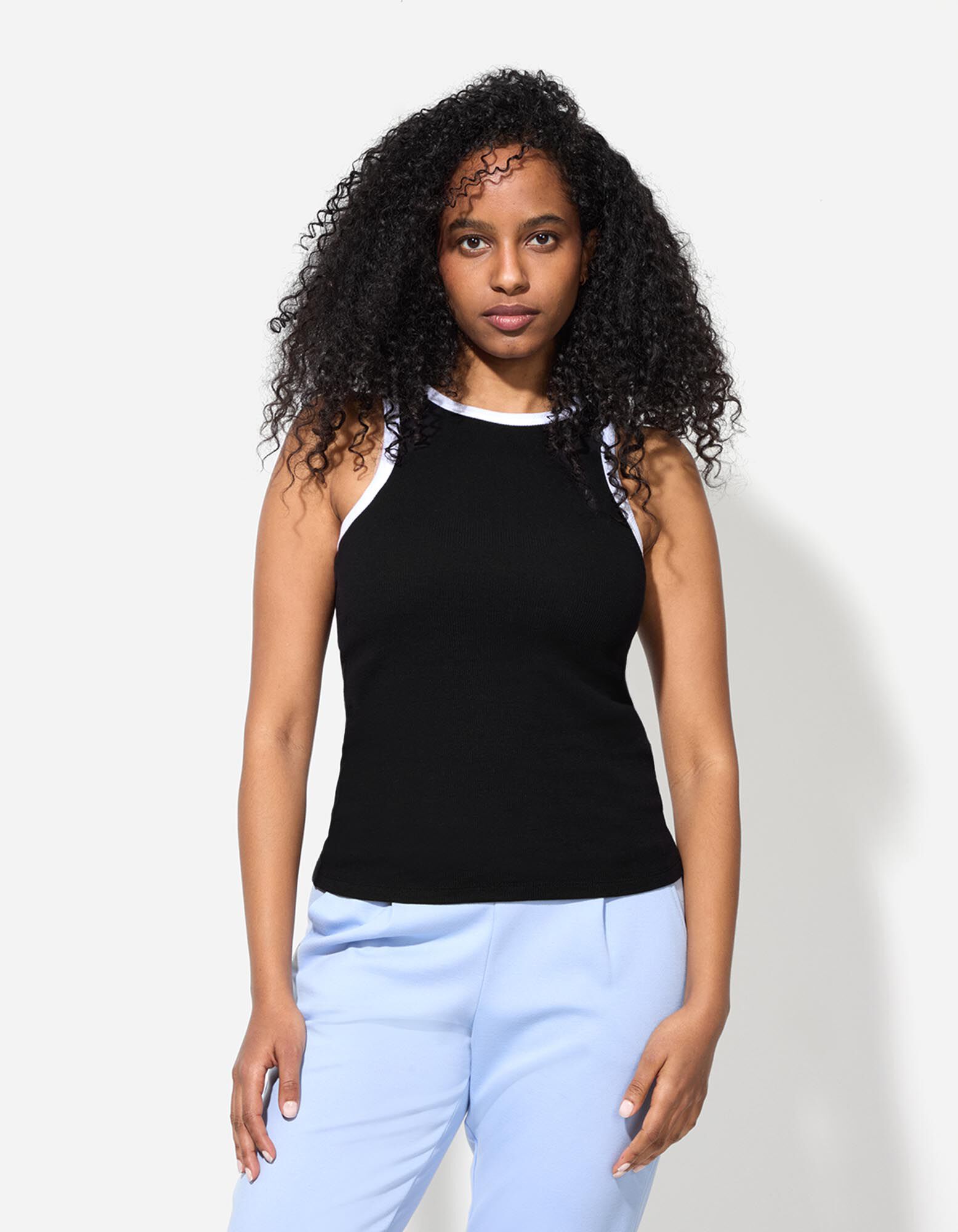 Top - Rippenstruktur - schwarz