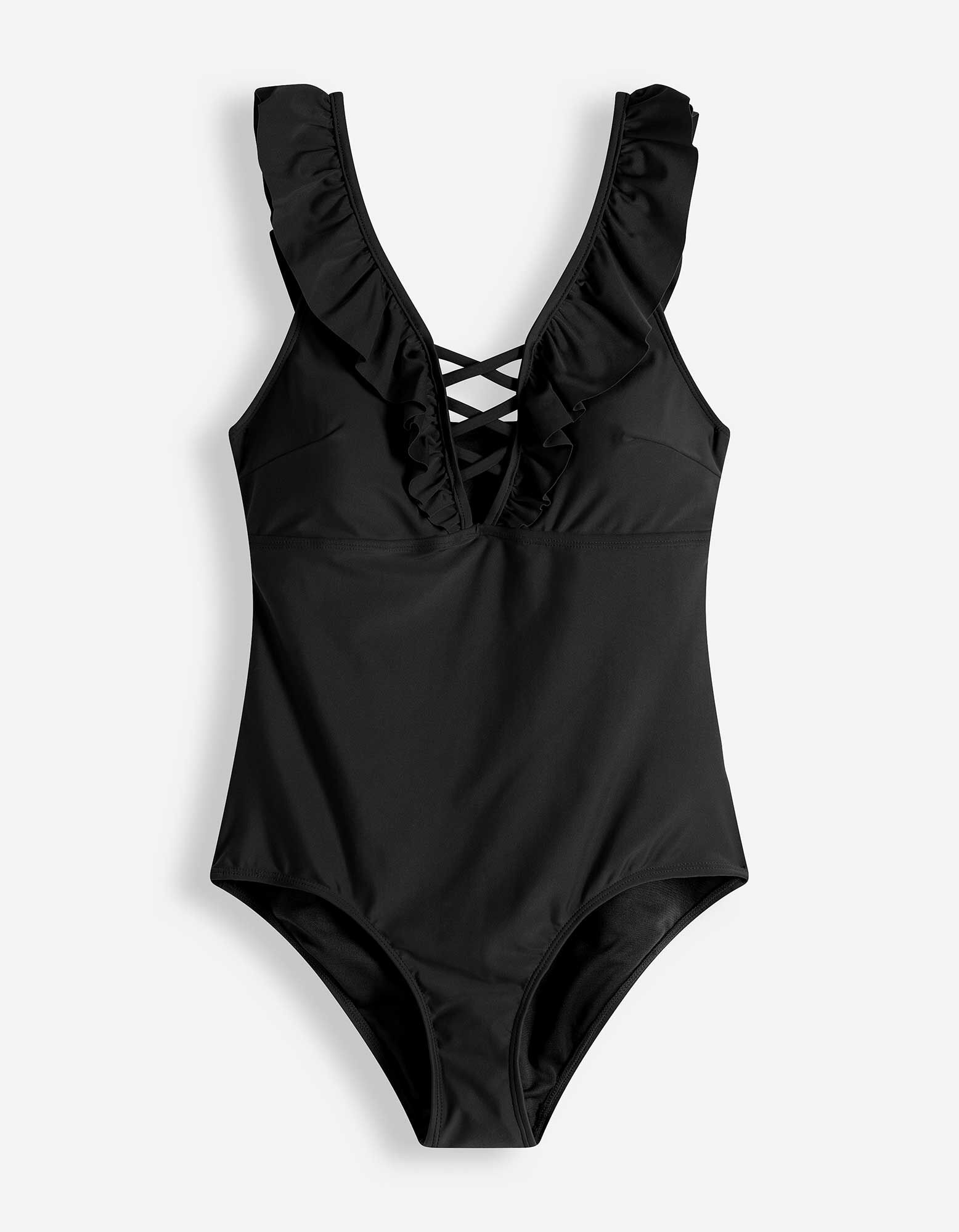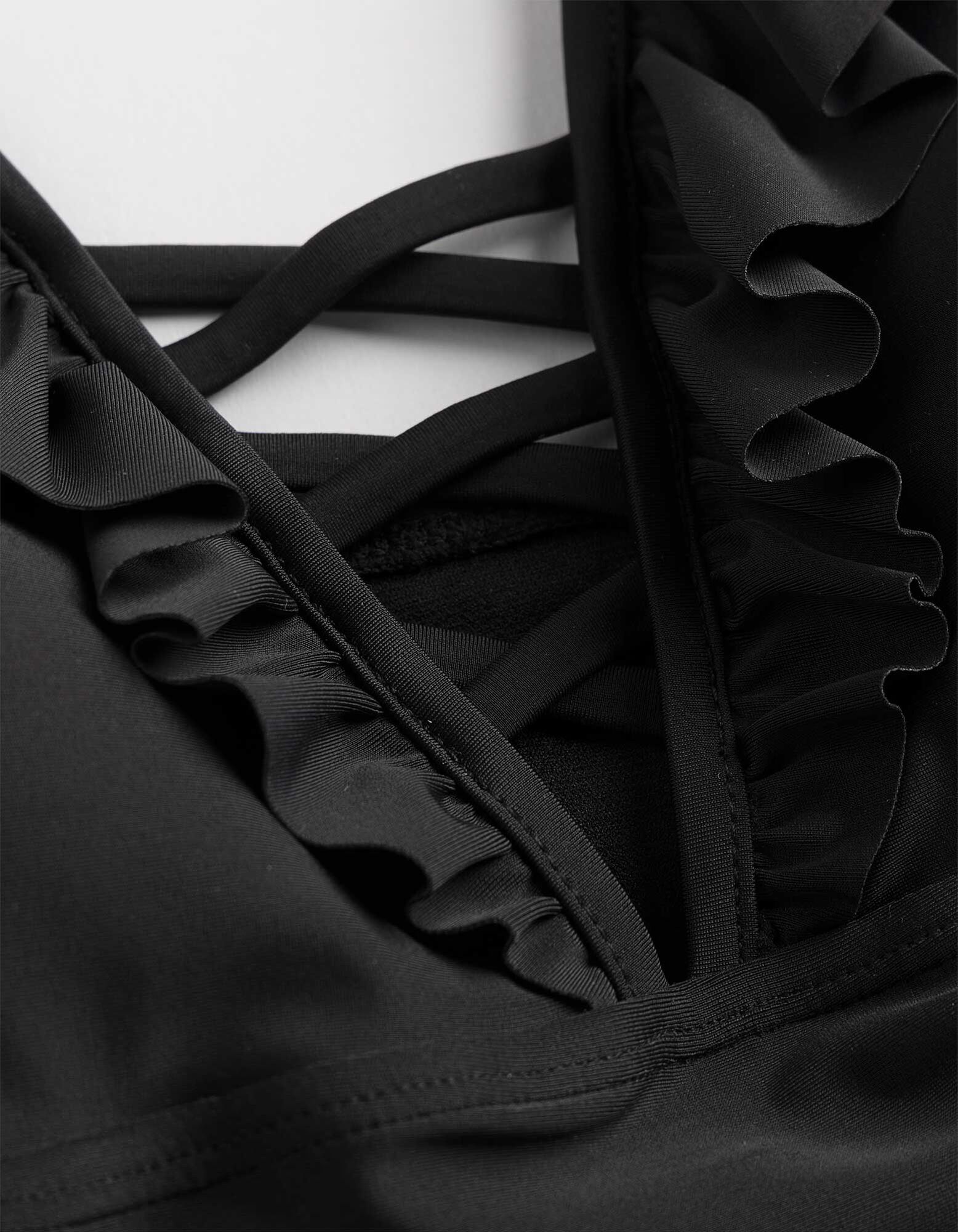 Badeanzug - Volants - schwarz