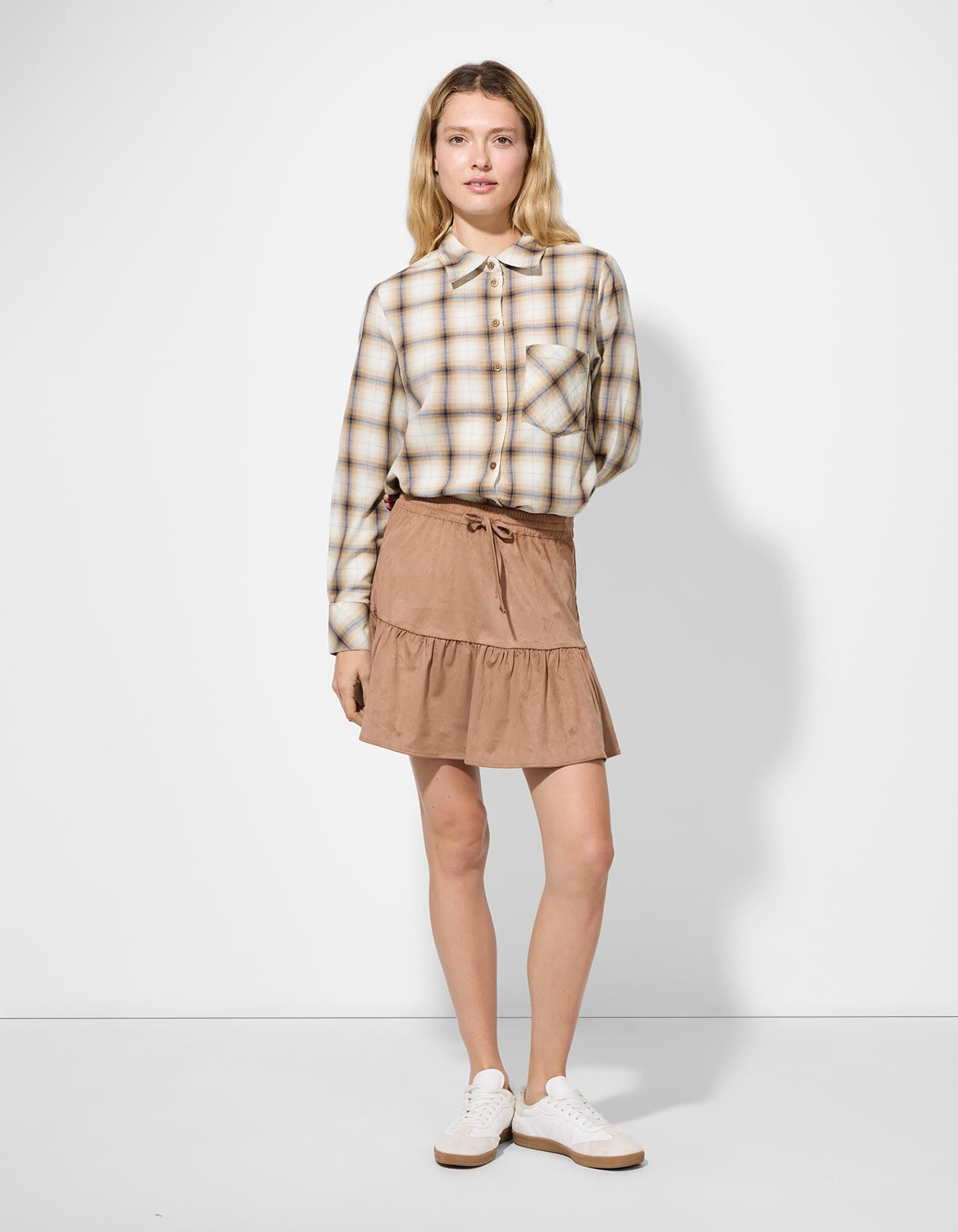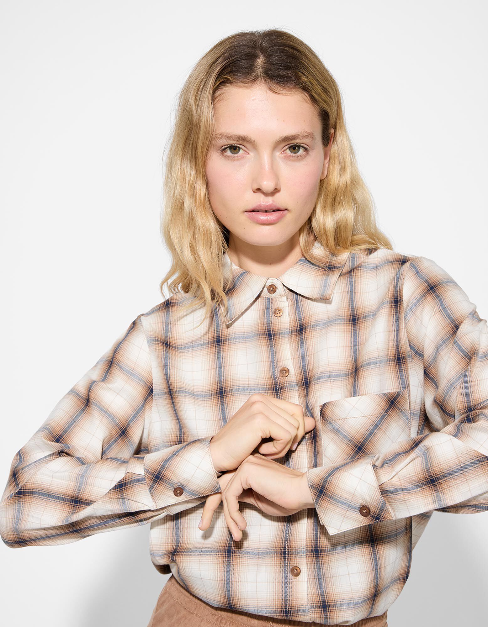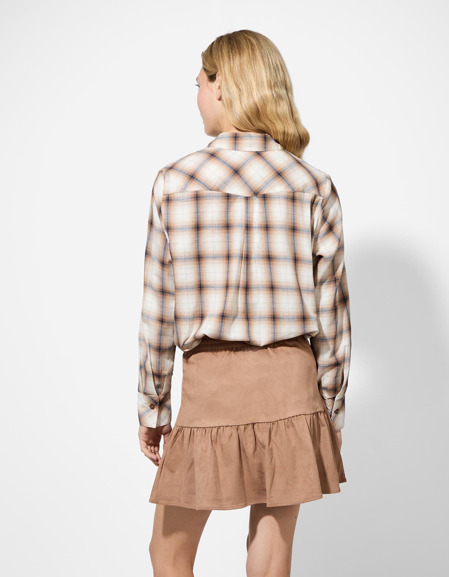 Bluse - Karomuster - hellbraun