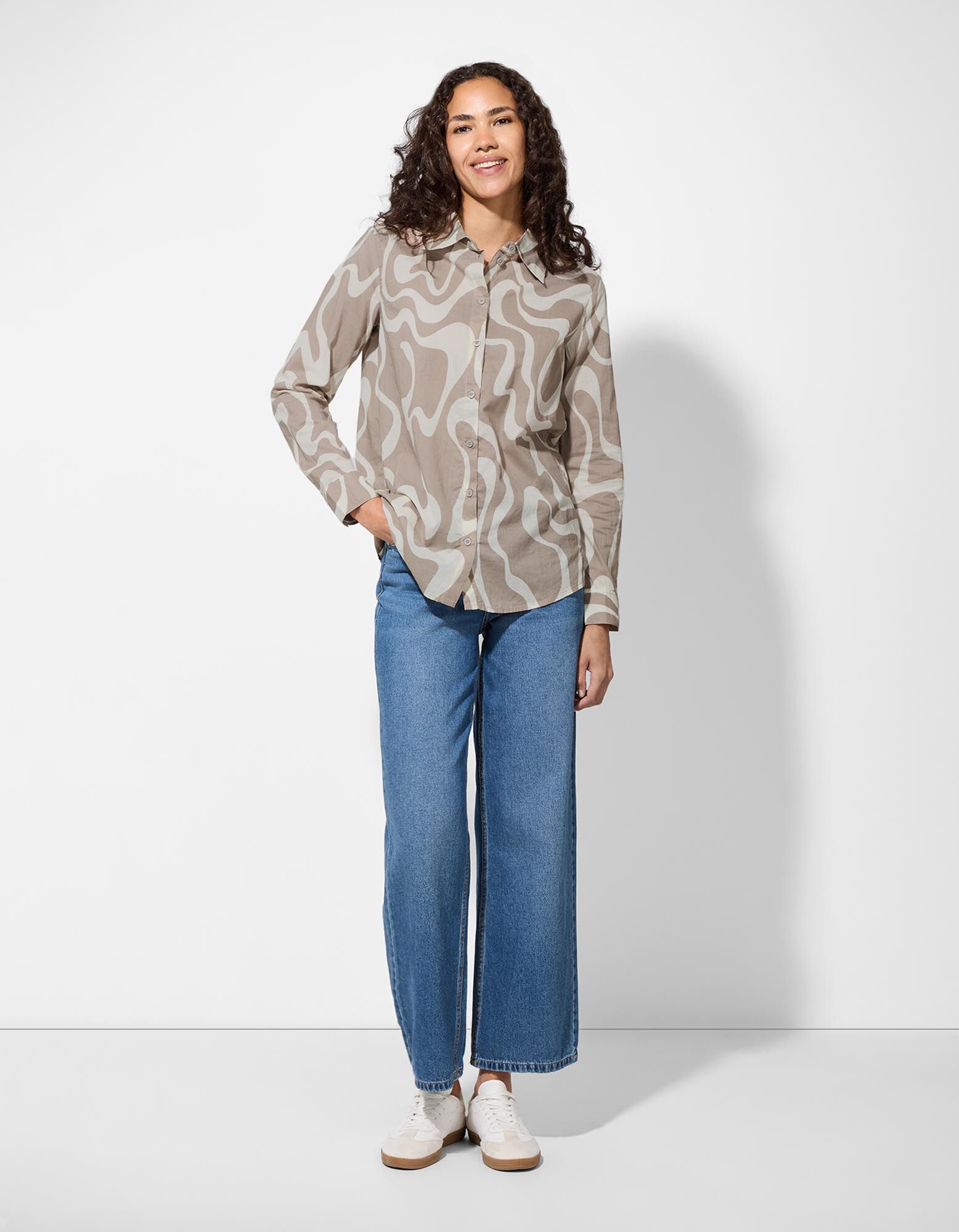 Bluse - Allover-Print - beige