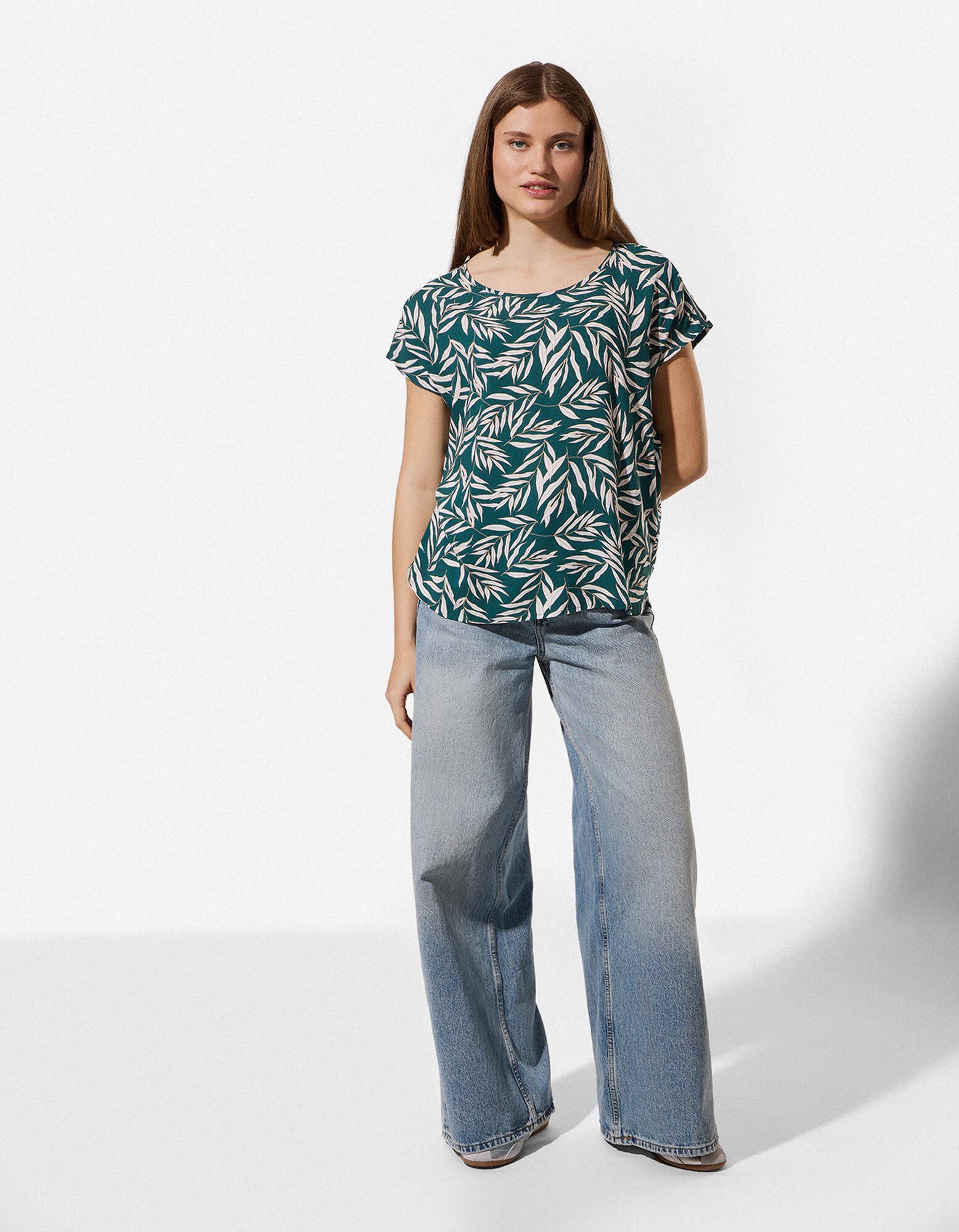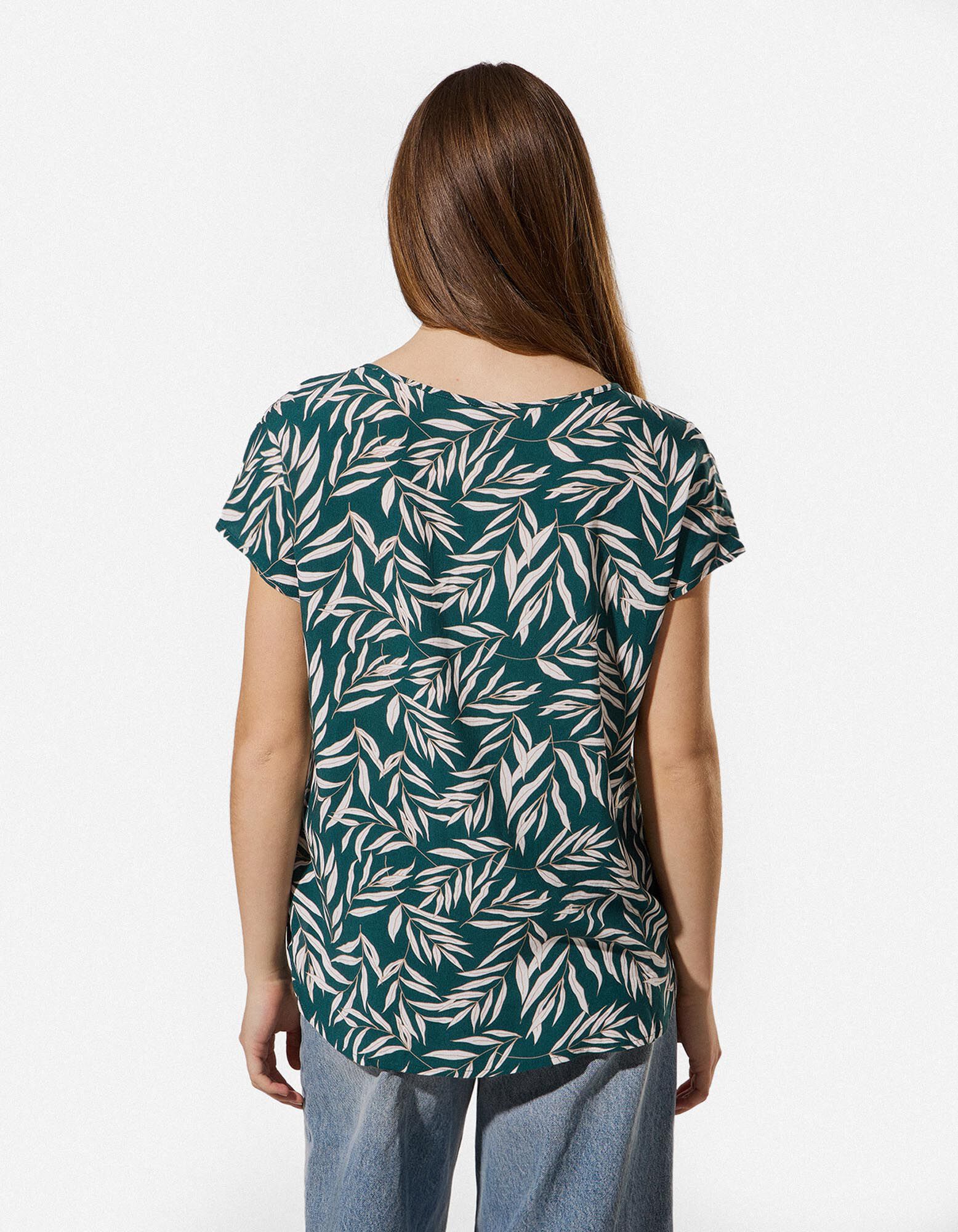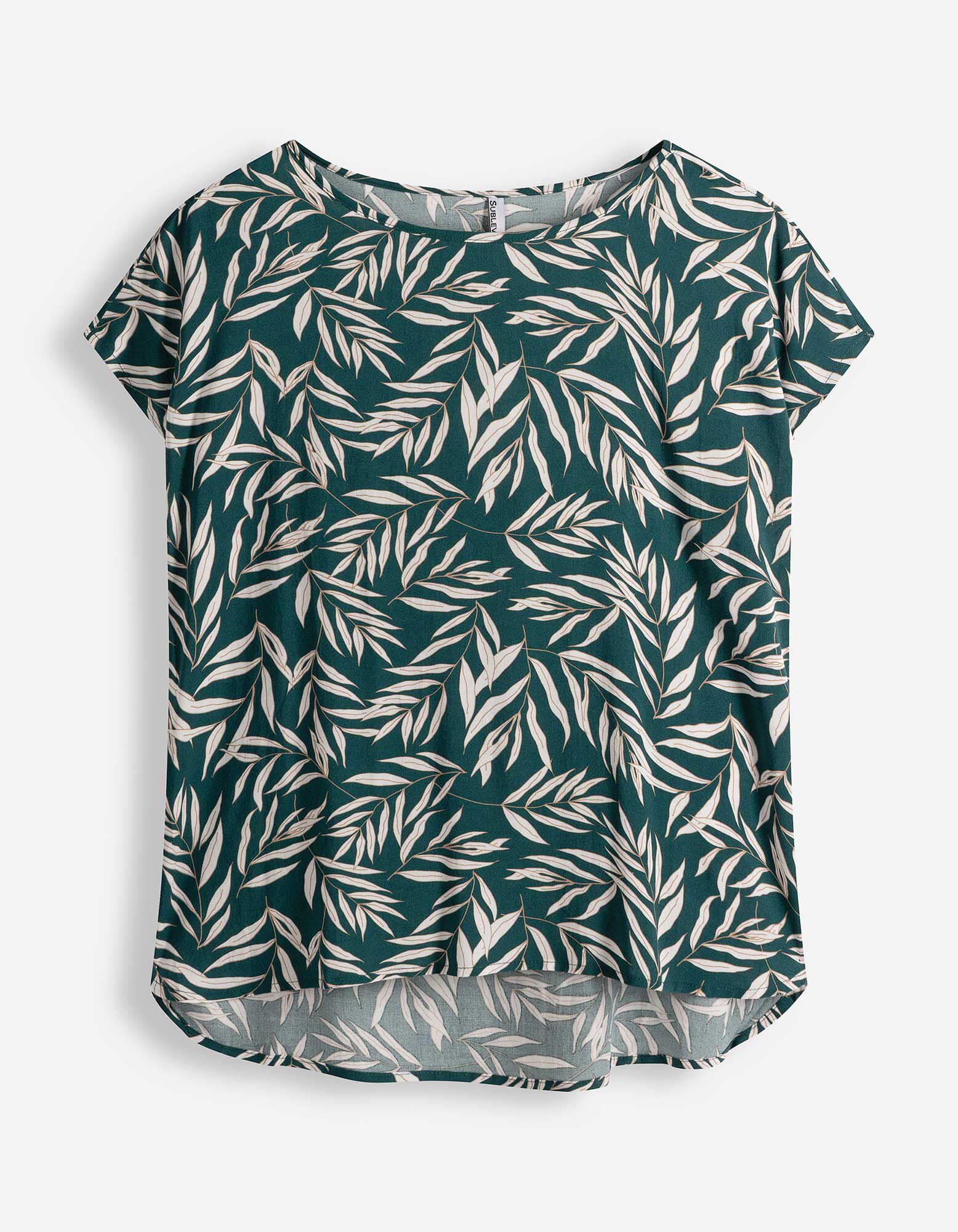 Bluse - Allover-Print - dunkelgrün