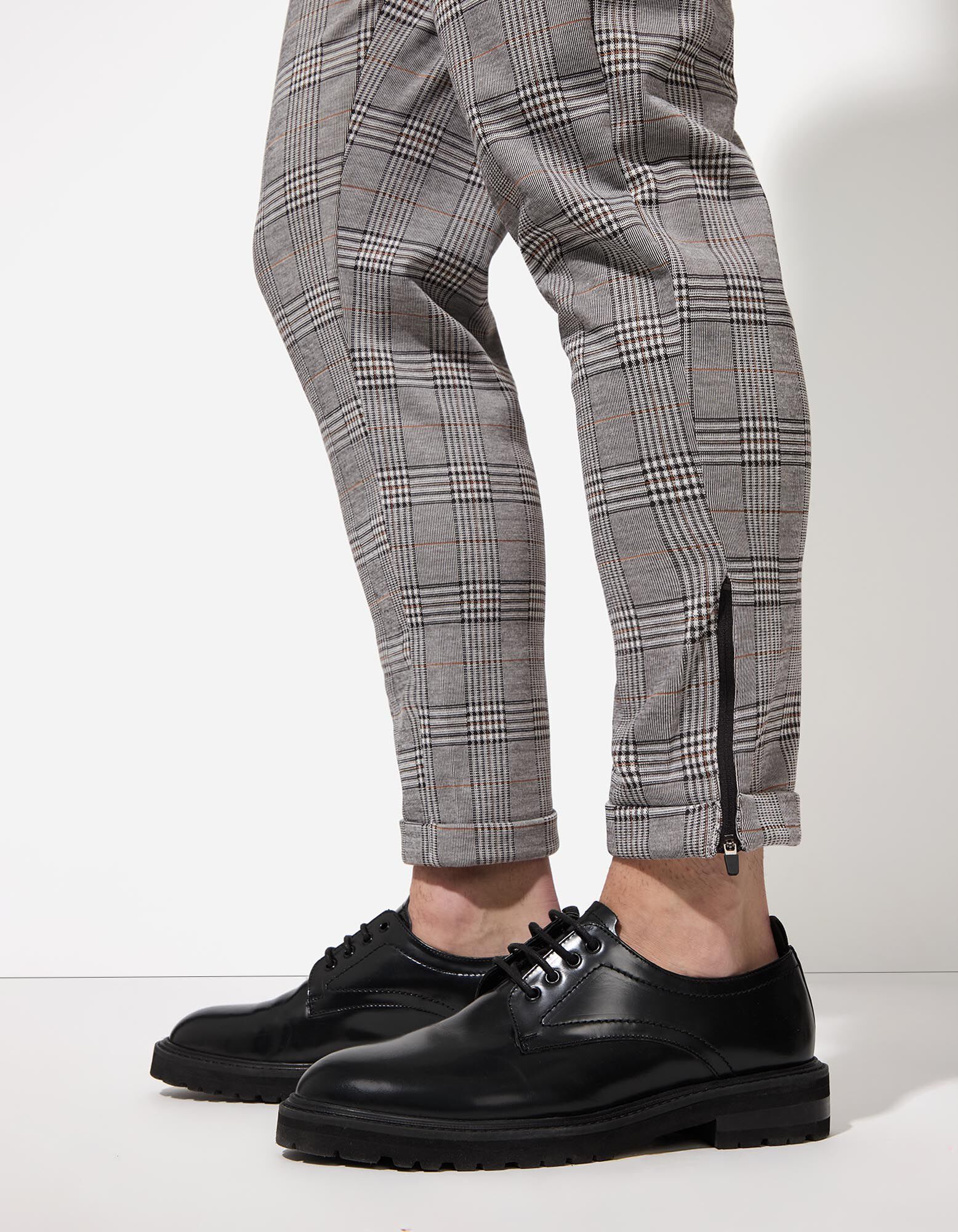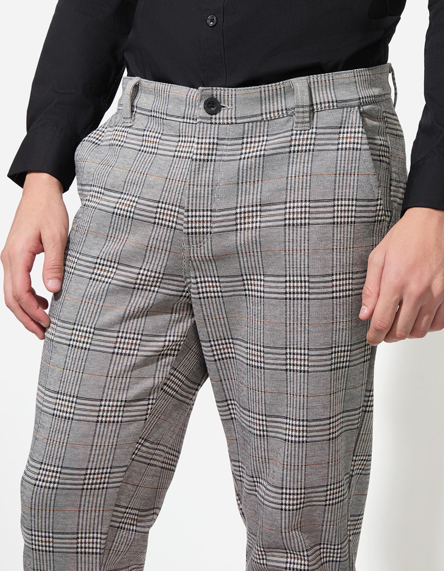 Chinohose - Glencheck - hellgrau