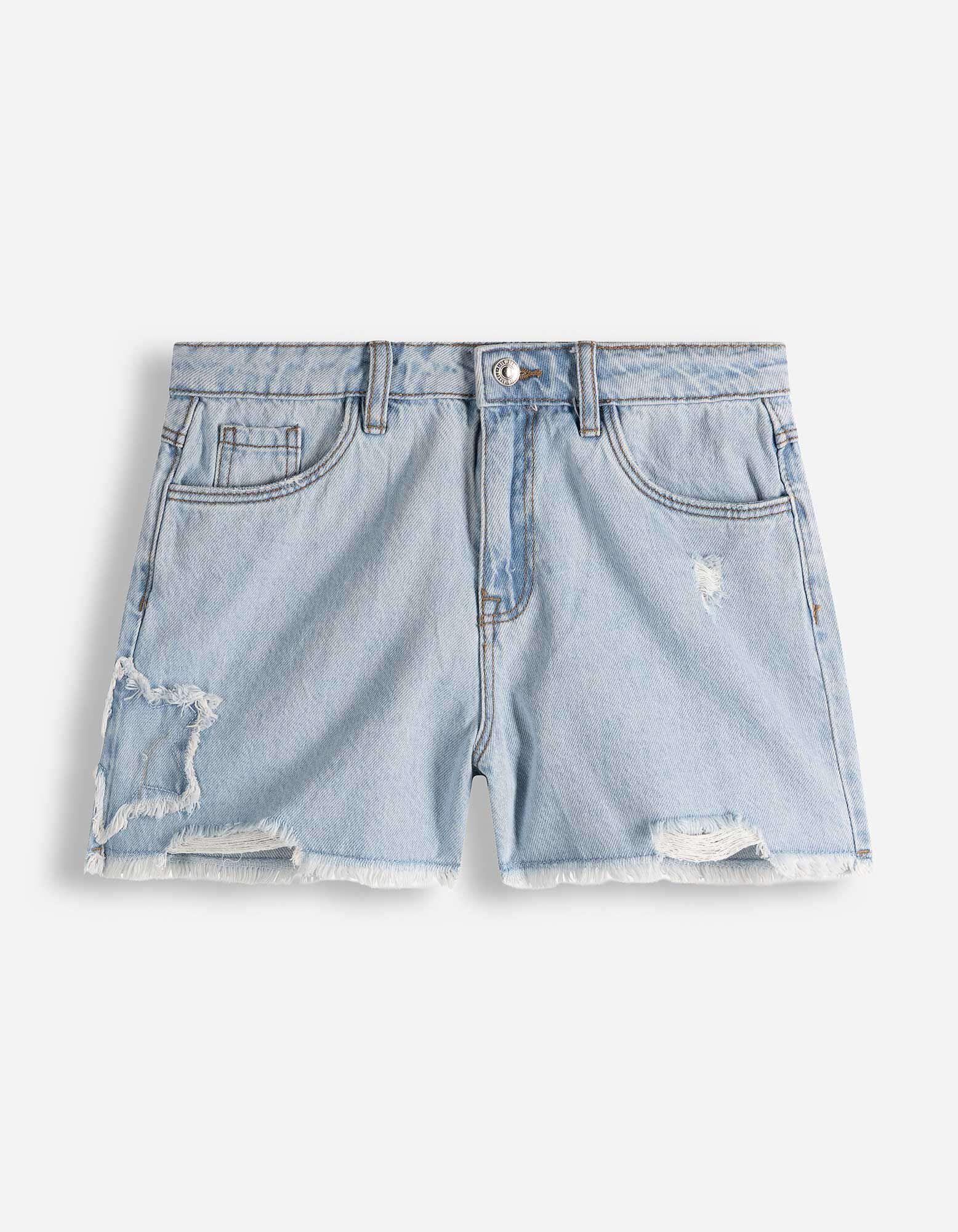 Jeansshorts - Herzen - hellblau