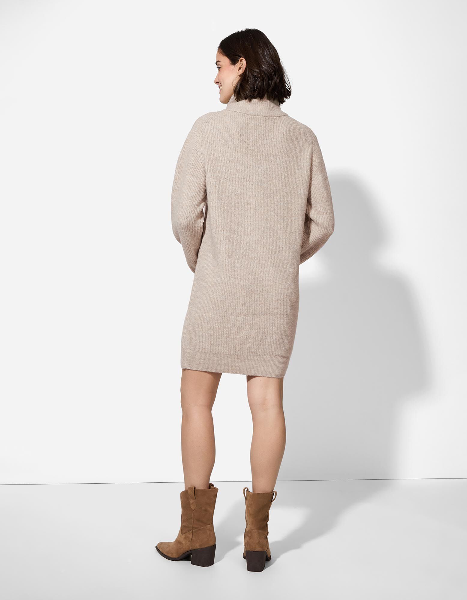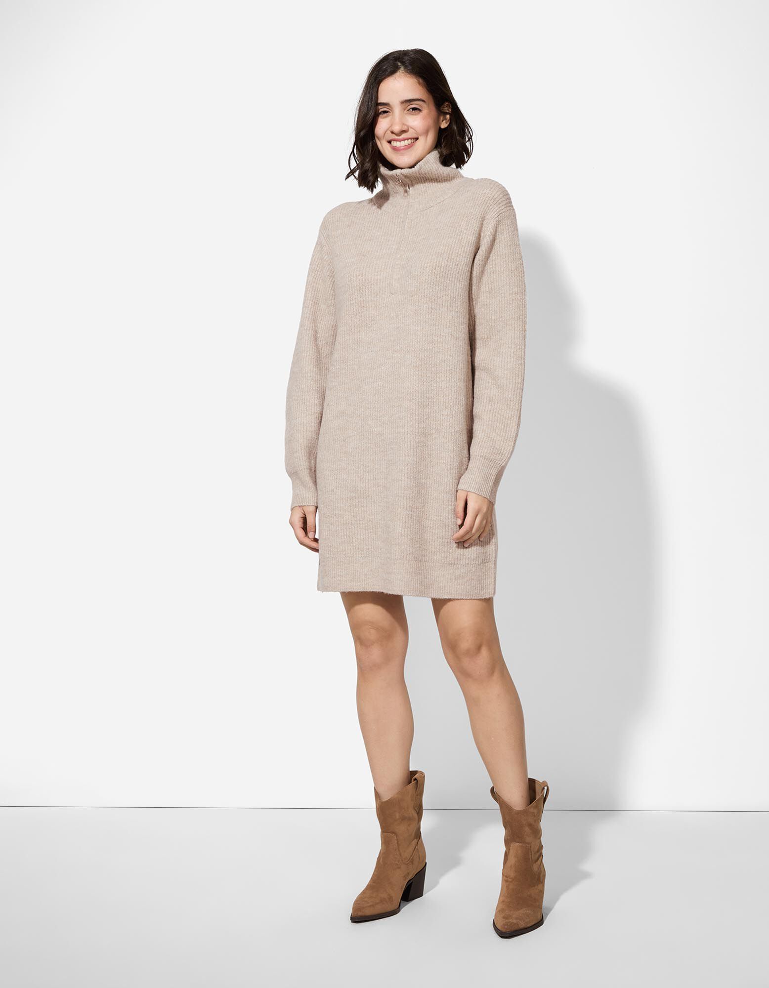 Kleid - Rollkragen - beige