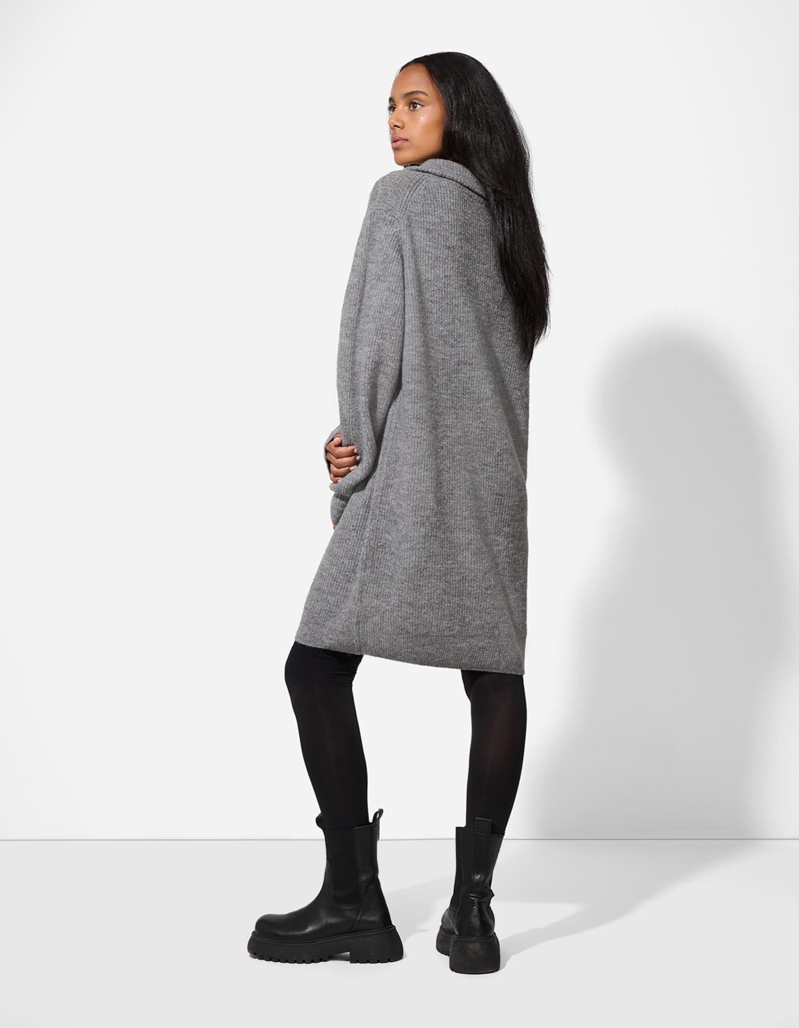 Kleid - Rollkragen - grau