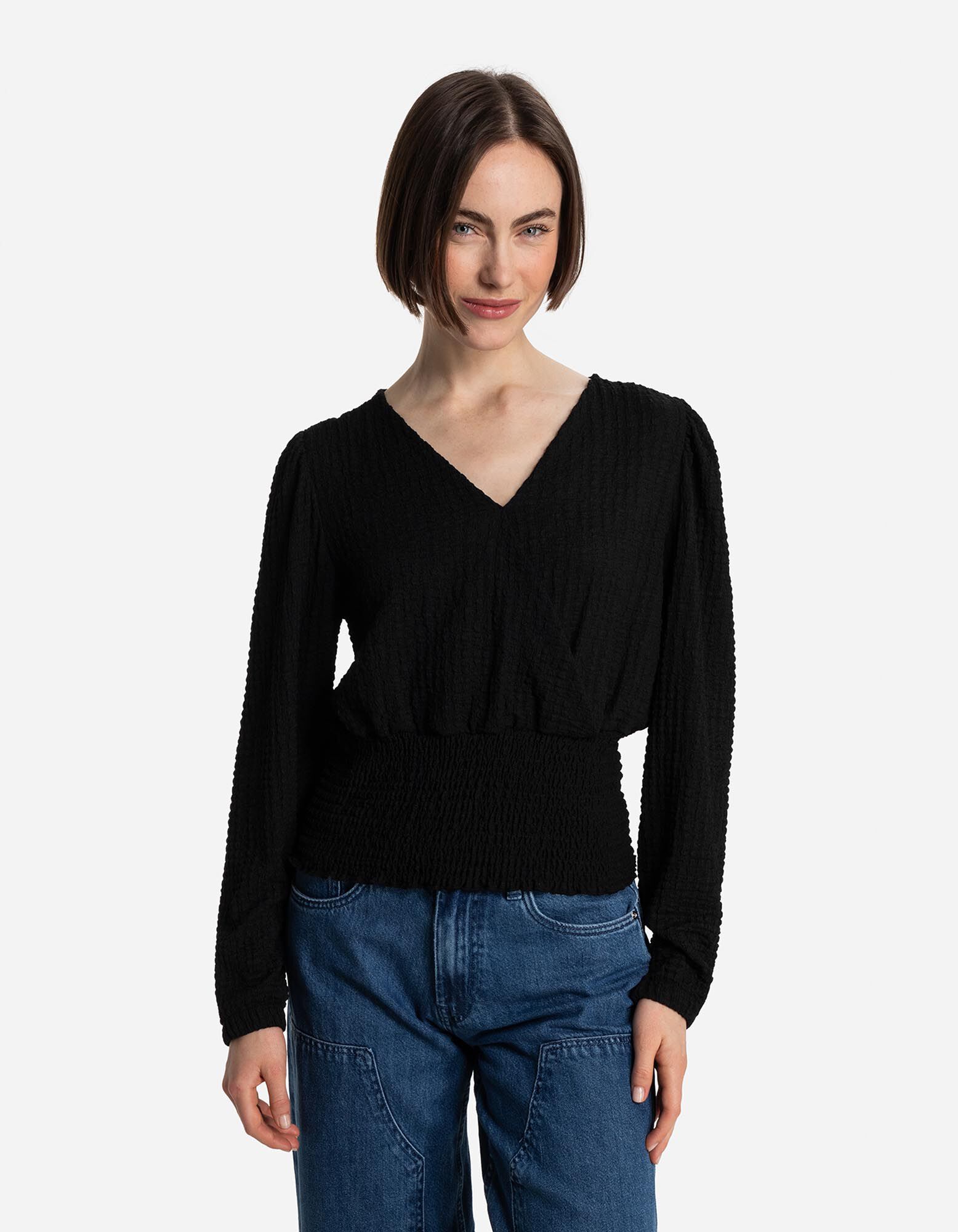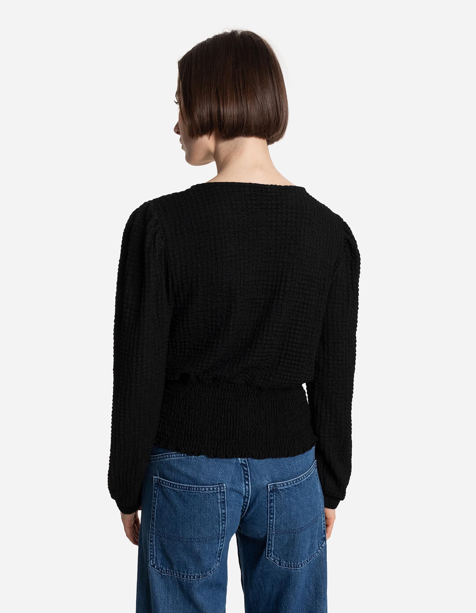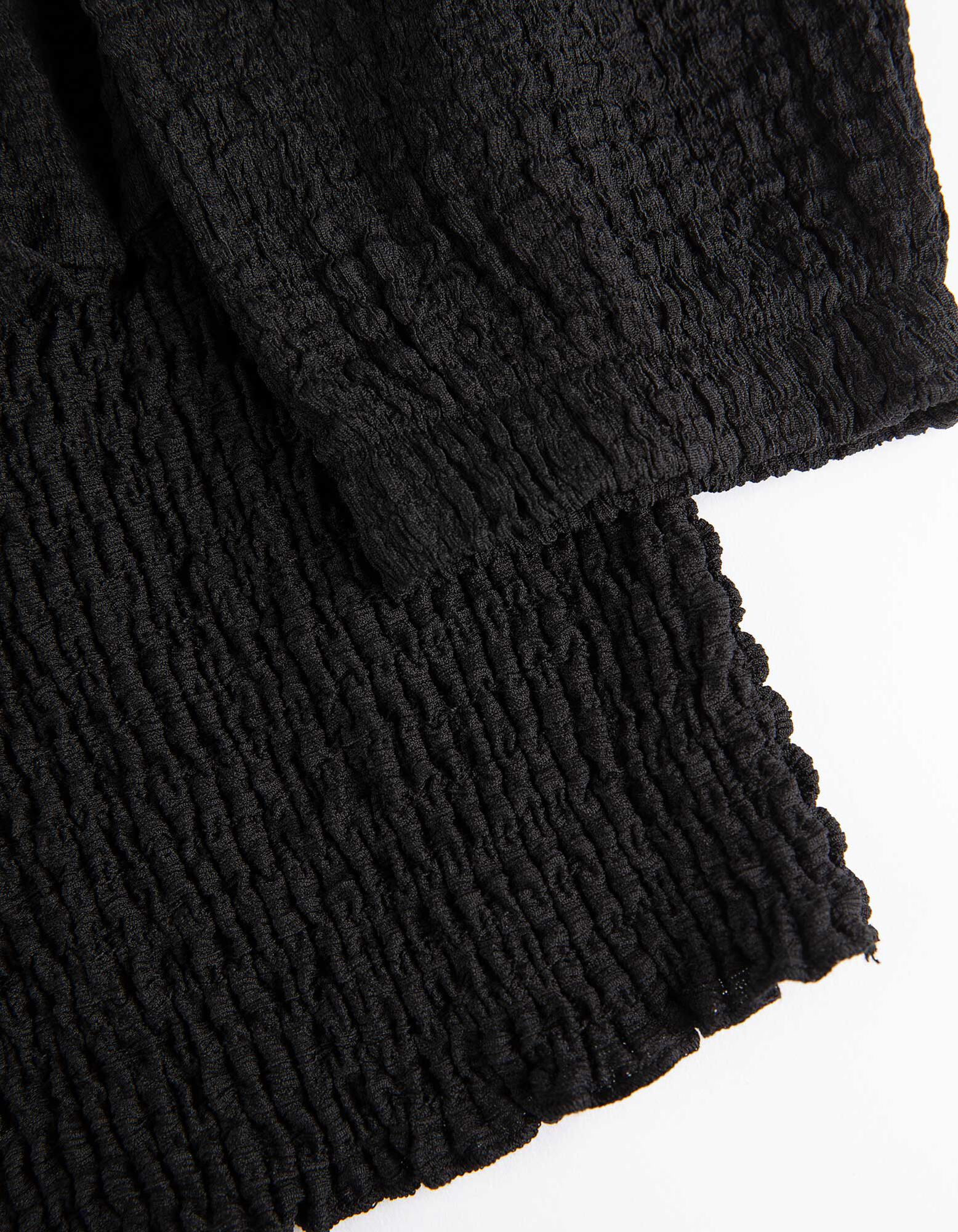 Langarmshirt - Crinkle-Optik - schwarz