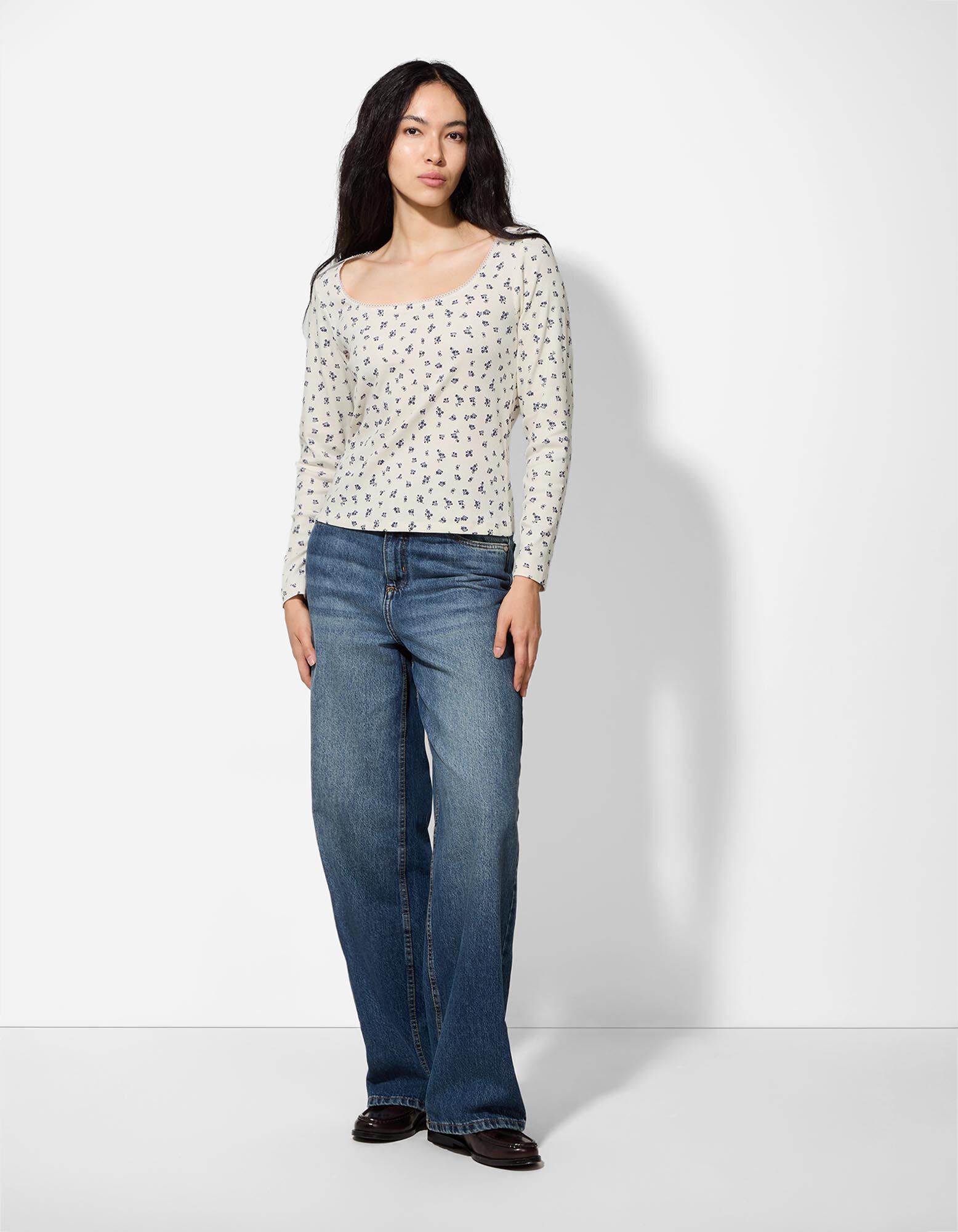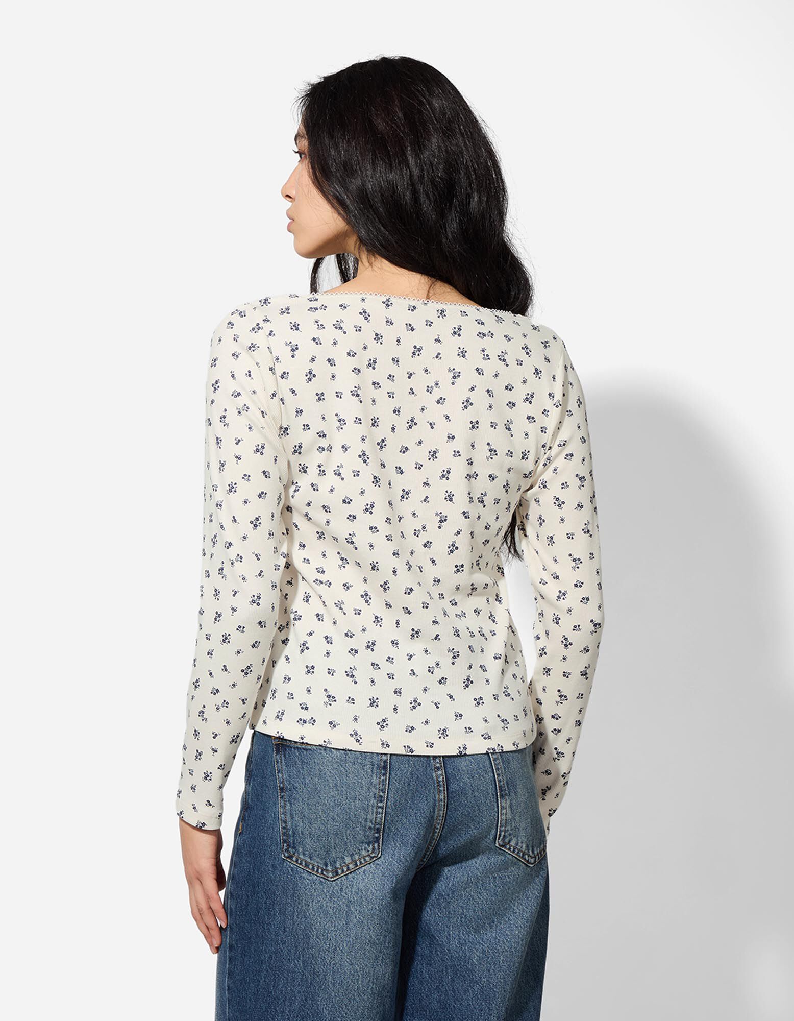 Langarmshirt - Zierborte - weiß