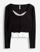 Pflegehinweis: Vor dem ersten Tragen separat von links mit ähnlichen Farben waschen. Kleidungsstück ausschließlich mit Feinwaschmittel im Feinwaschgang waschen. Feucht in Form ziehen. Wenn Bekleidungsstück bedruckt, bitte wenden und auf der Innenseite bügeln. Von offenem Feuer fernhalten.