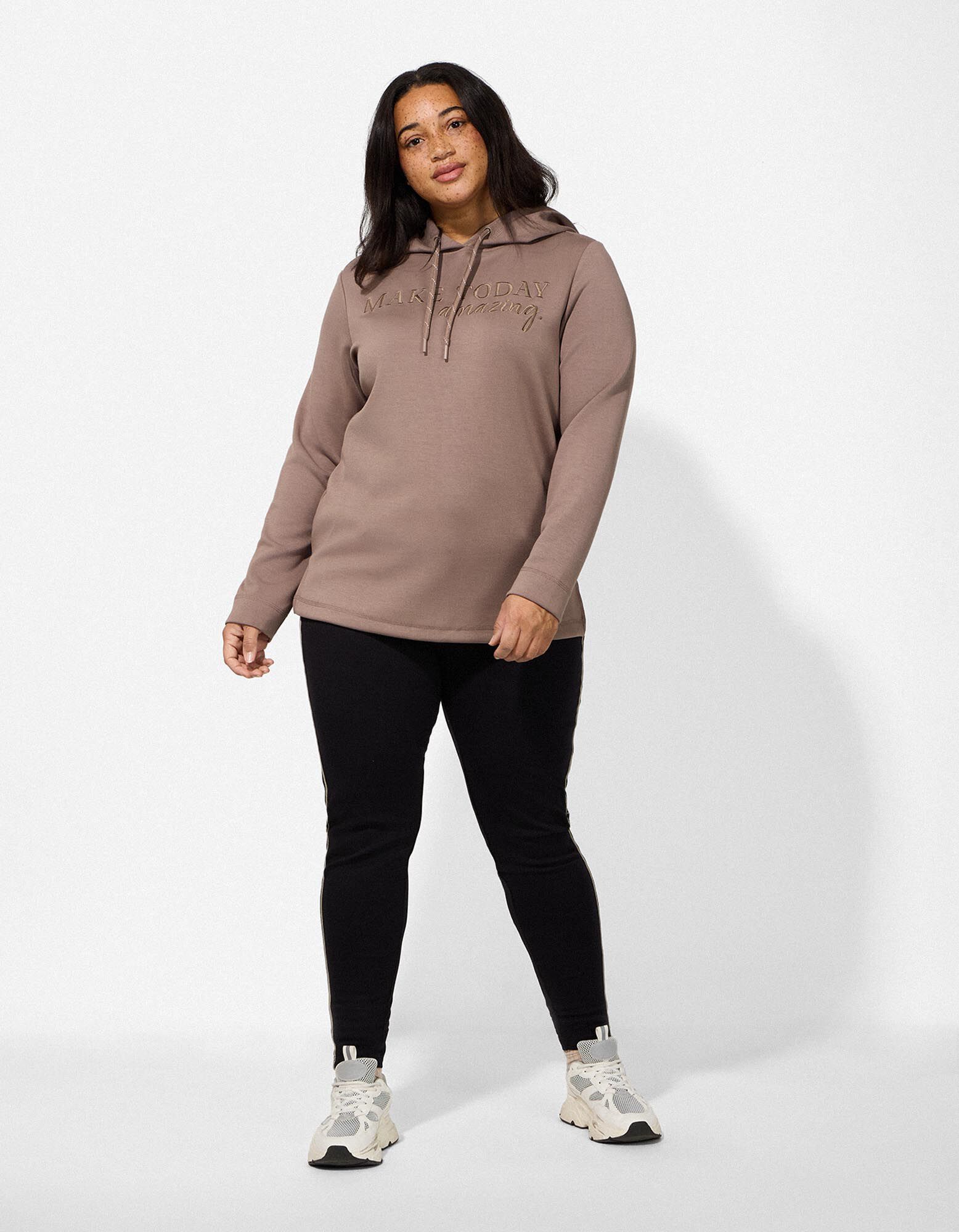 • Details: Kapuze mit Tunnelzug, Messageprint, Seitenschlitz
