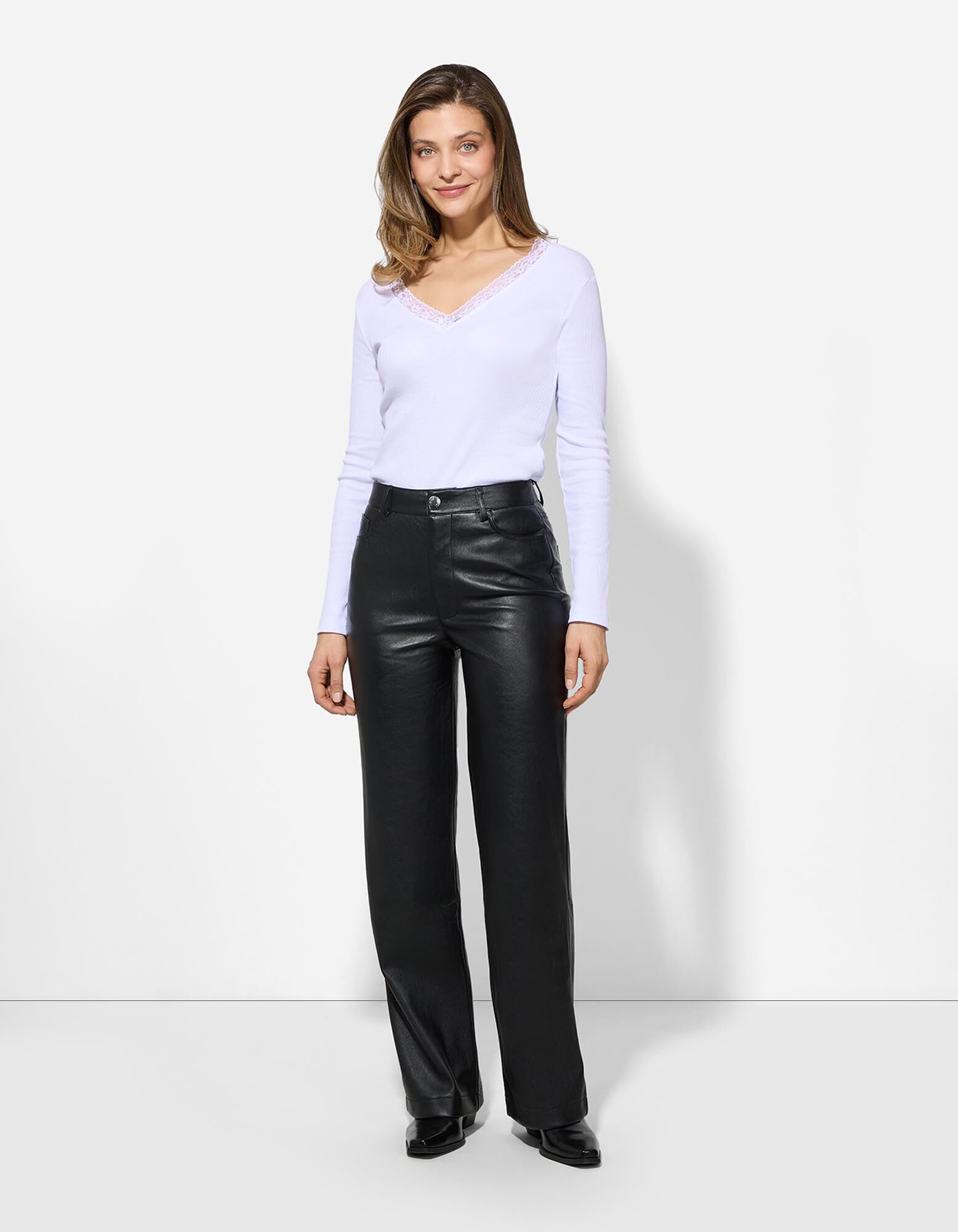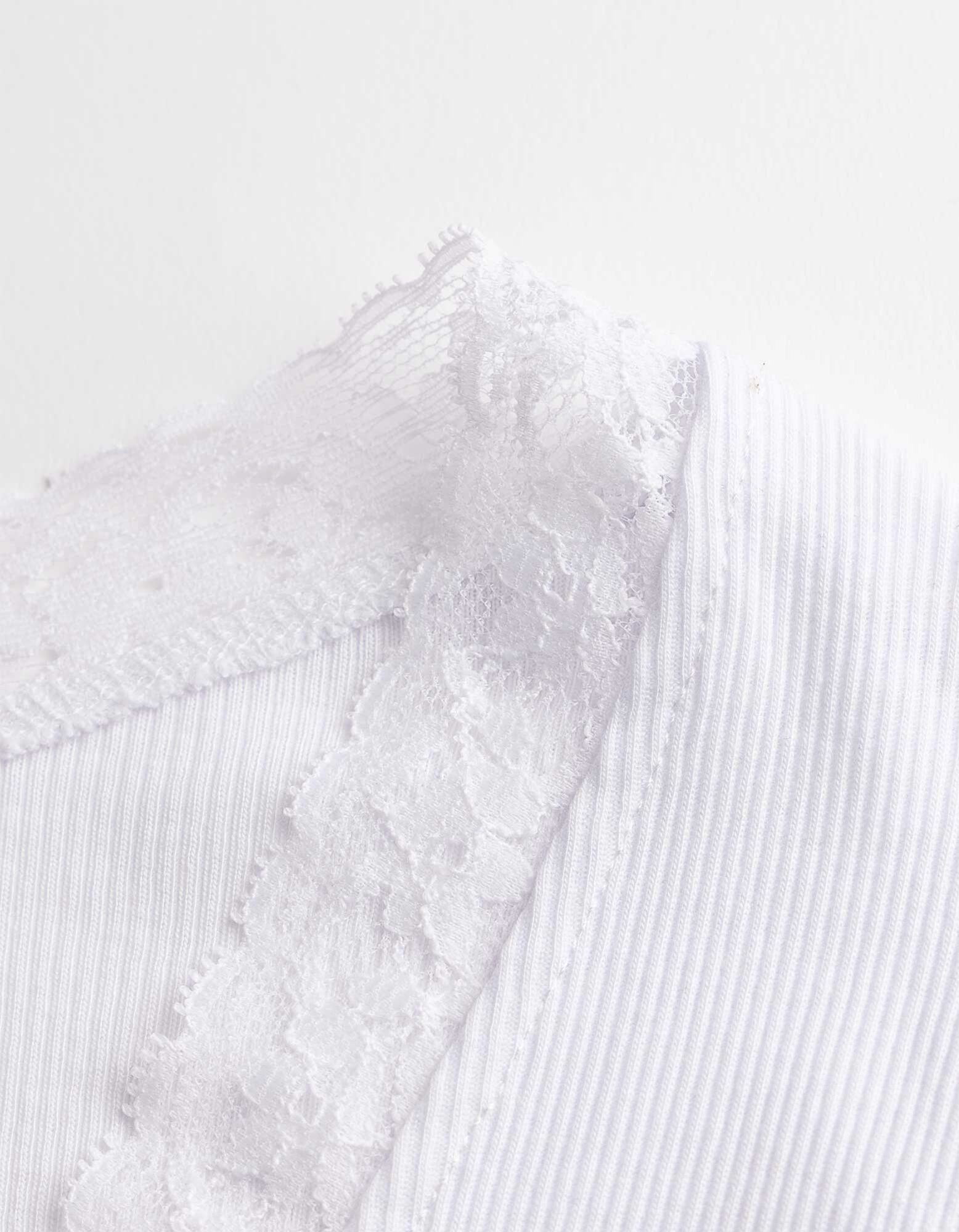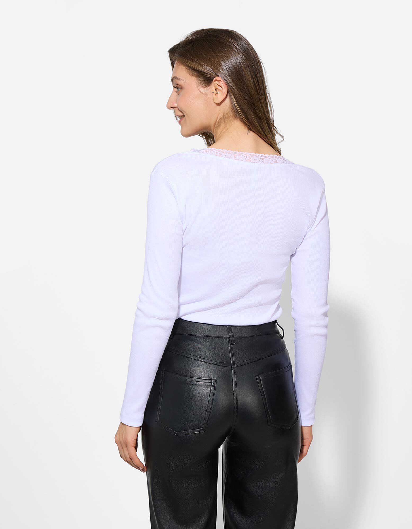 Langarmshirt - Spitzenbesatz - weiß