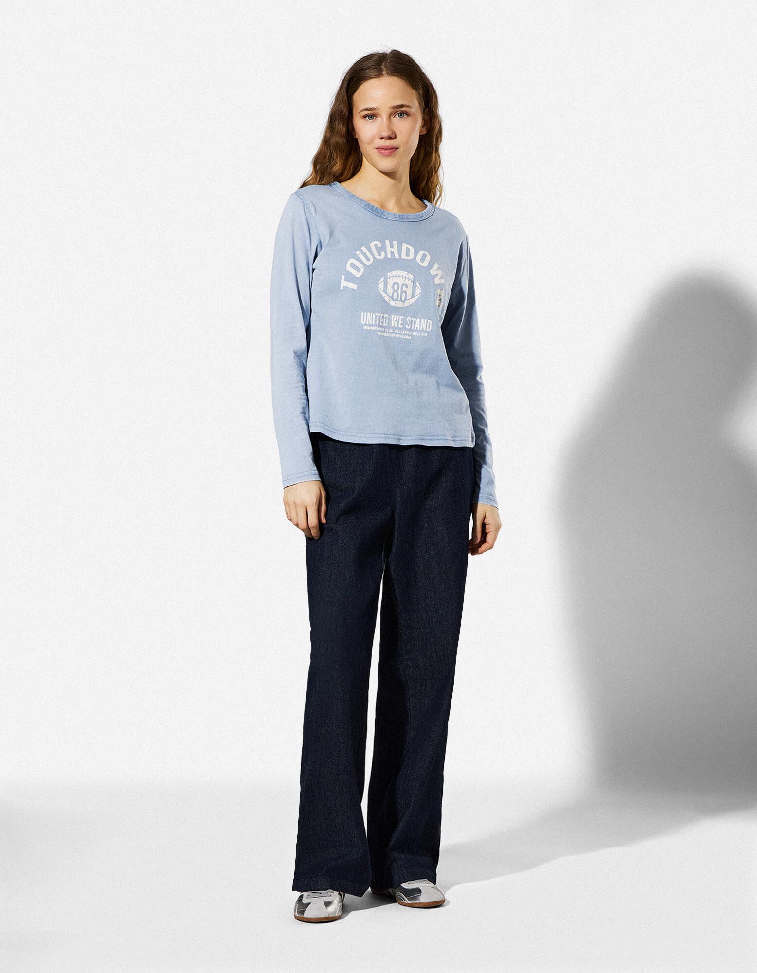 Langarmshirt - Frontprint - hellblau