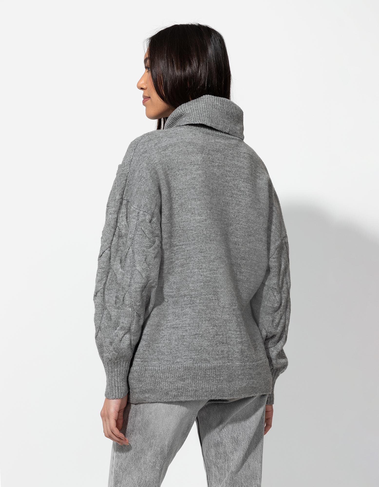 Longpullover - Rollkragen - grau