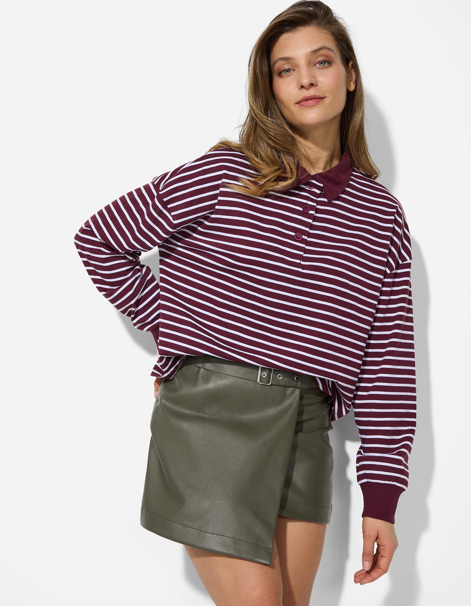 Unser Model ist 174 cm groß und trägt Größe 36.
